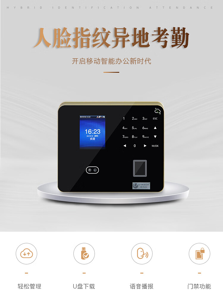 优玛仕(U-MACH)人脸指纹考勤机异地联网签到机公司面部识别上下班打卡机U-PF1000-P2P