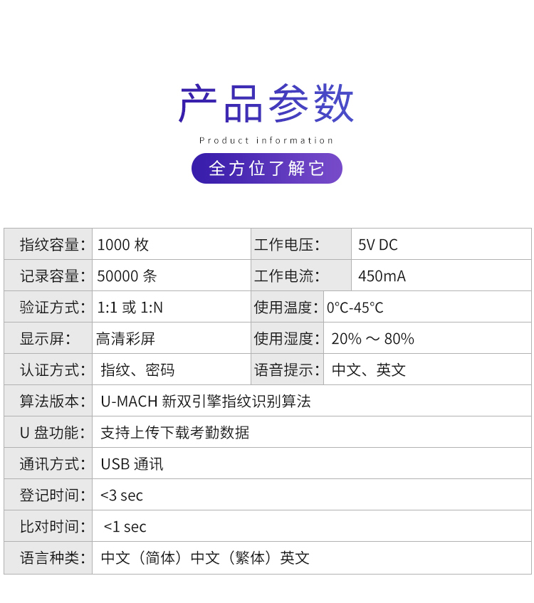 优玛仕 U-MACH 指纹小型考勤机便携式简单操作U盘导出数据免软件U-Z21