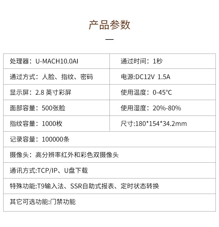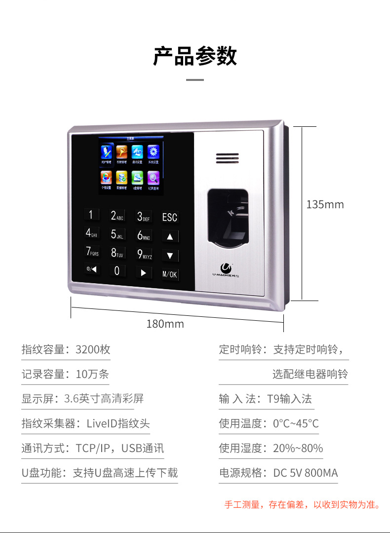 优玛仕 U-MACH智能指纹考勤机打卡机U-Z20