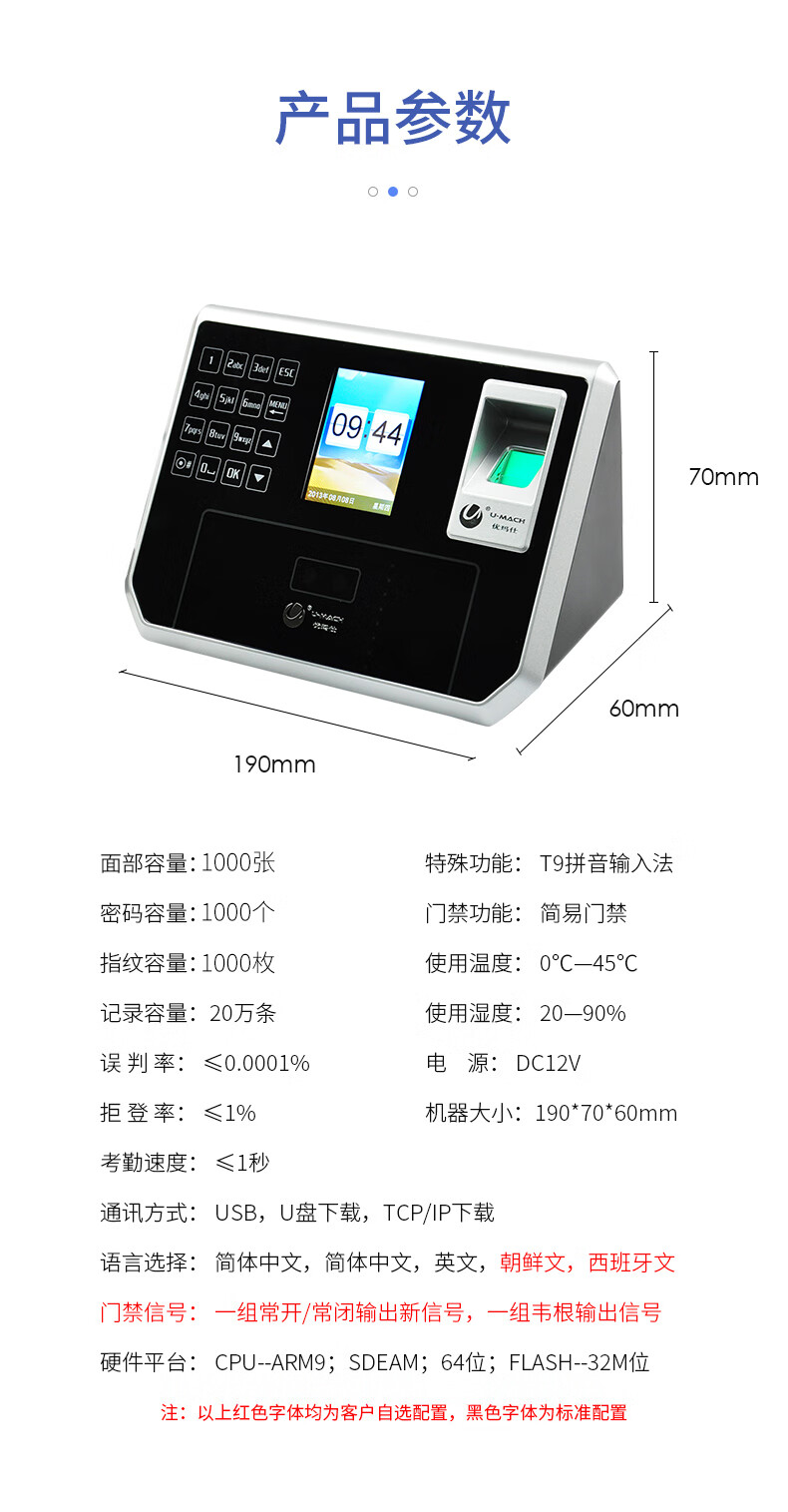 优玛仕 U-MACH智能指纹考勤机打卡机U-Z20