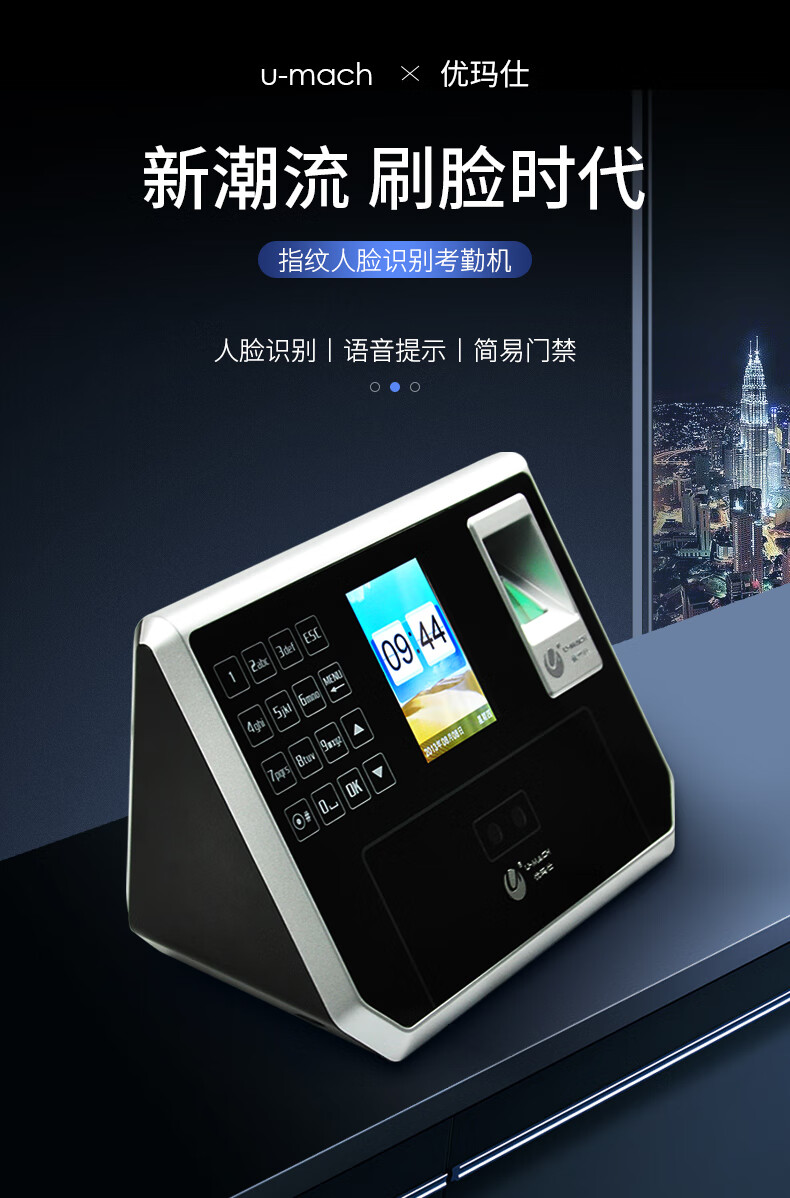 优玛仕(U-MACH)人脸指纹考勤机异地联网签到机公司面部识别上下班打卡机U-PF1000-P2P