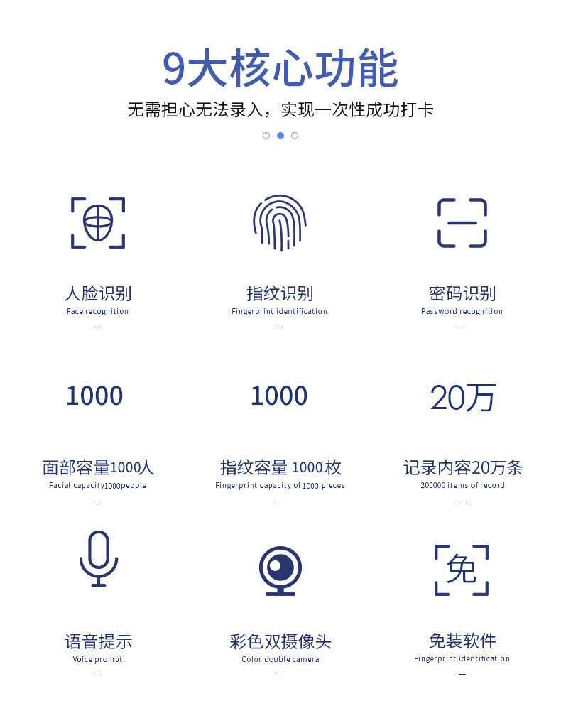 优玛仕(U-MACH)人脸面部识别考勤机员工上下班指纹签到机异地考勤打卡机U-RZ802-BS