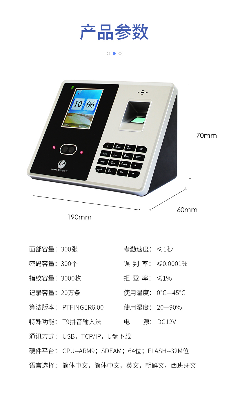 优玛仕 U-MACH智能指纹考勤机打卡机U-Z20