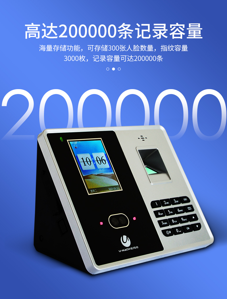 优玛仕(U-MACH)人脸面部识别考勤机员工上下班指纹签到机异地考勤打卡机U-RZ802-BS