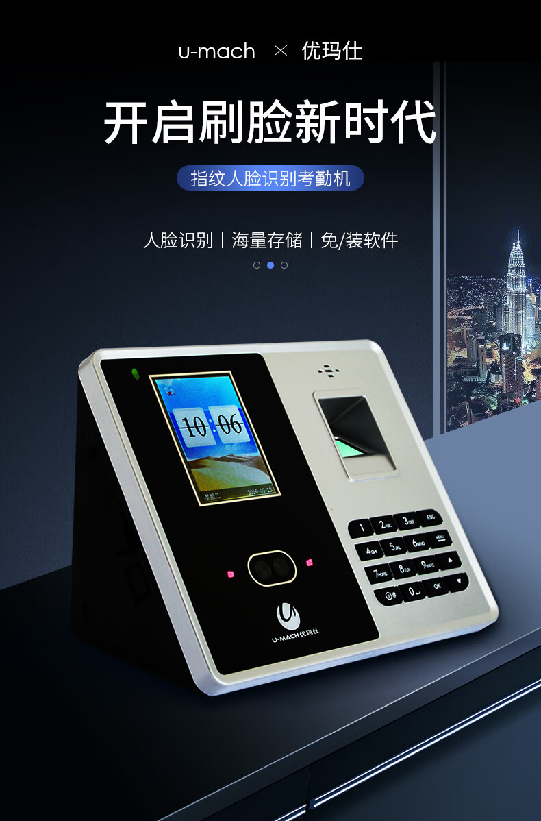优玛仕(U-MACH)人脸指纹考勤机异地联网签到机公司面部识别上下班打卡机U-PF1000-P2P