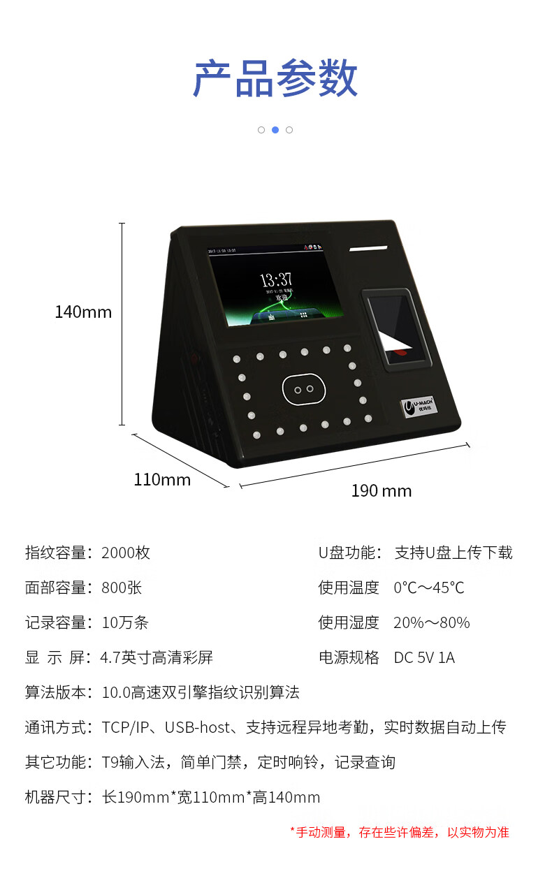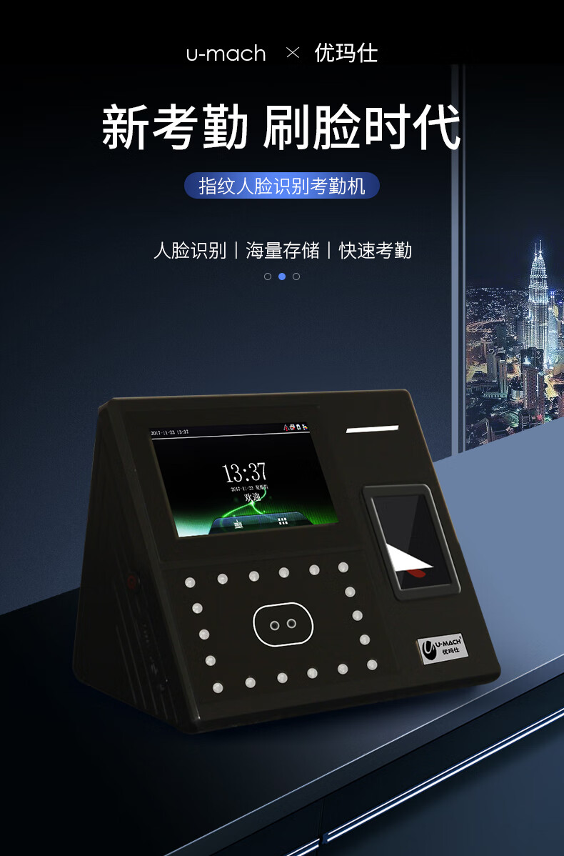 优玛仕(U-MACH)人脸指纹考勤机异地联网签到机公司面部识别上下班打卡机U-PF1000-P2P