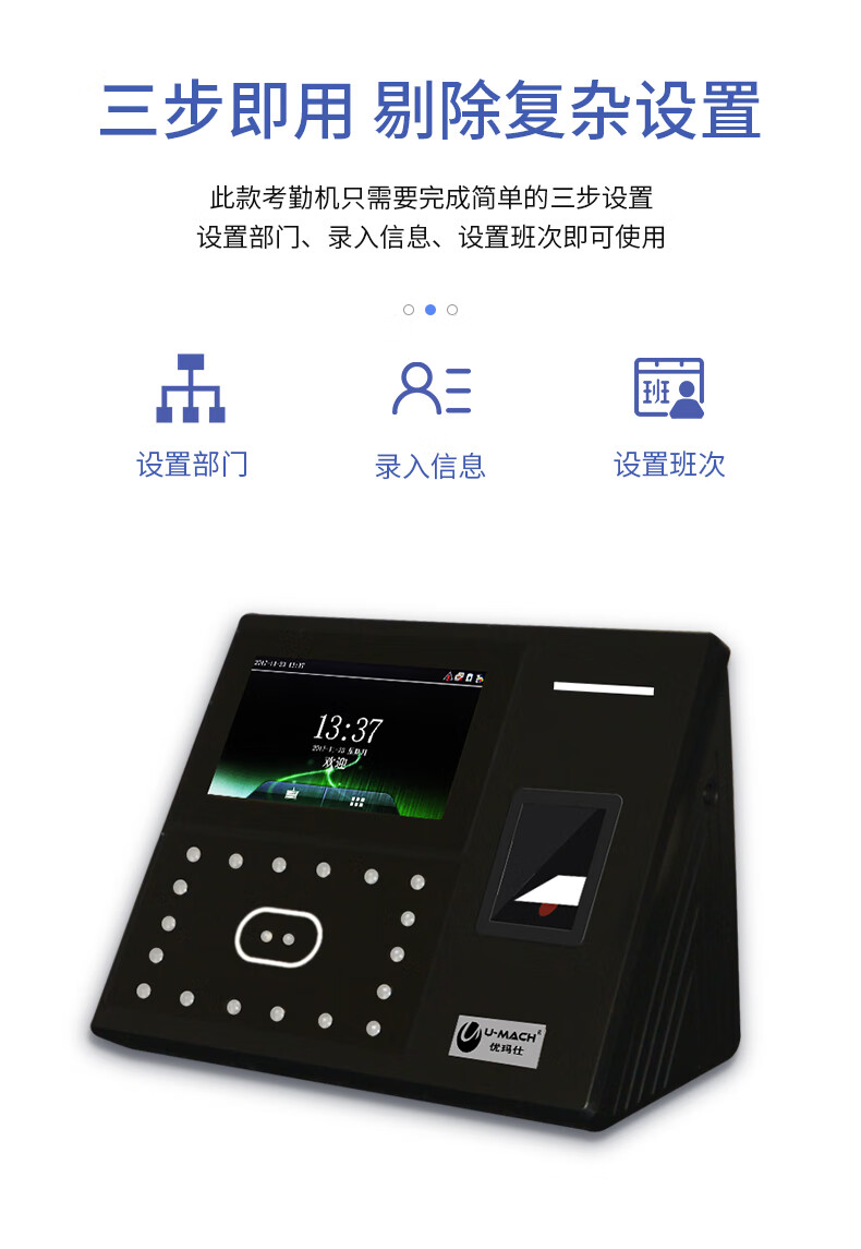 优玛仕 (U-MACH)动态人脸识别考勤机异地联网打卡机指纹机员工上下班签到机 U-A702-BS
