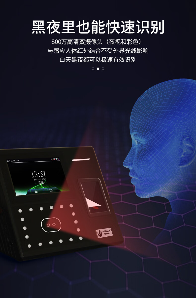优玛仕(U-MACH)人脸面部识别考勤机员工上下班指纹签到机异地考勤打卡机U-RZ802-BS