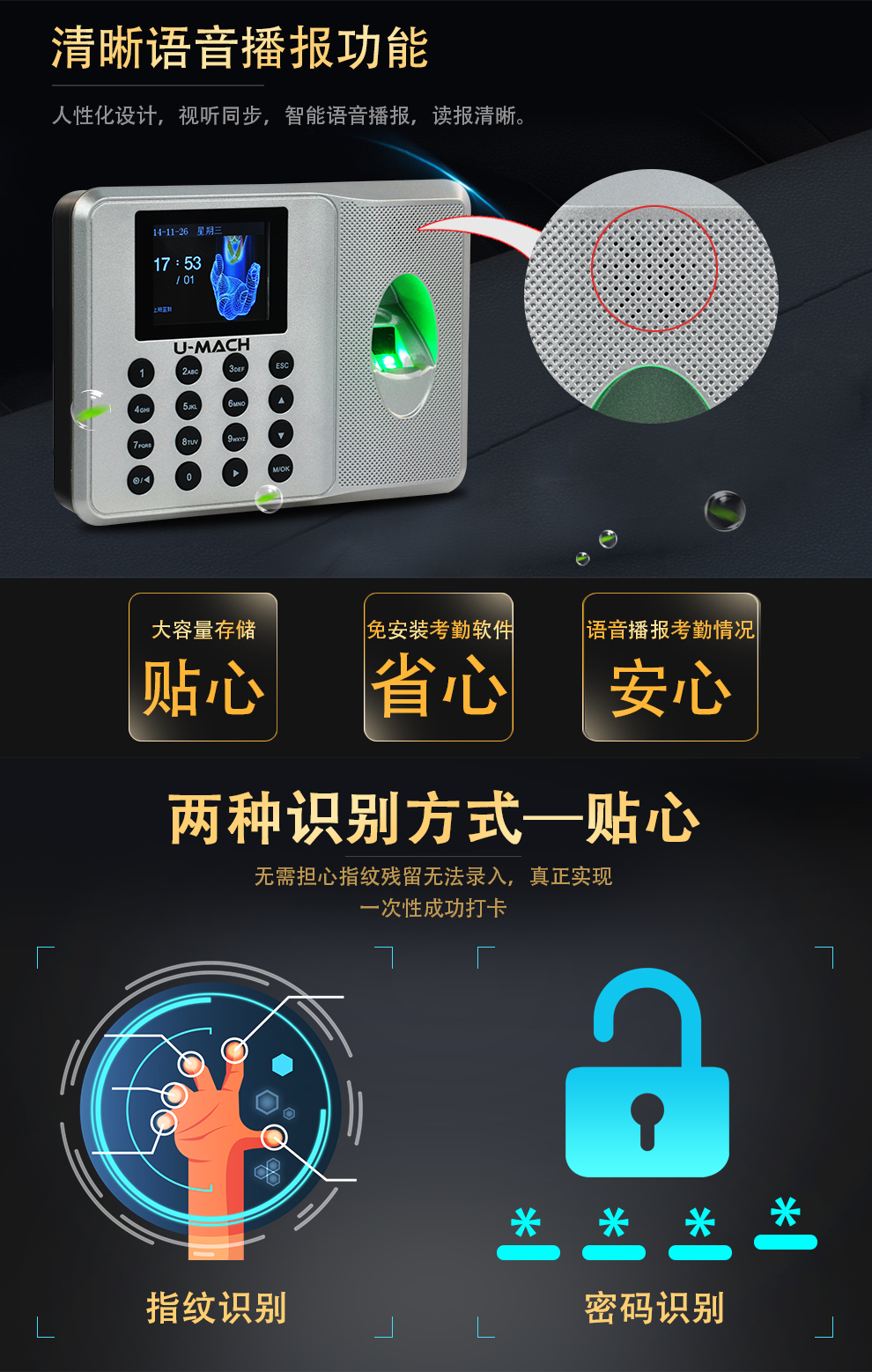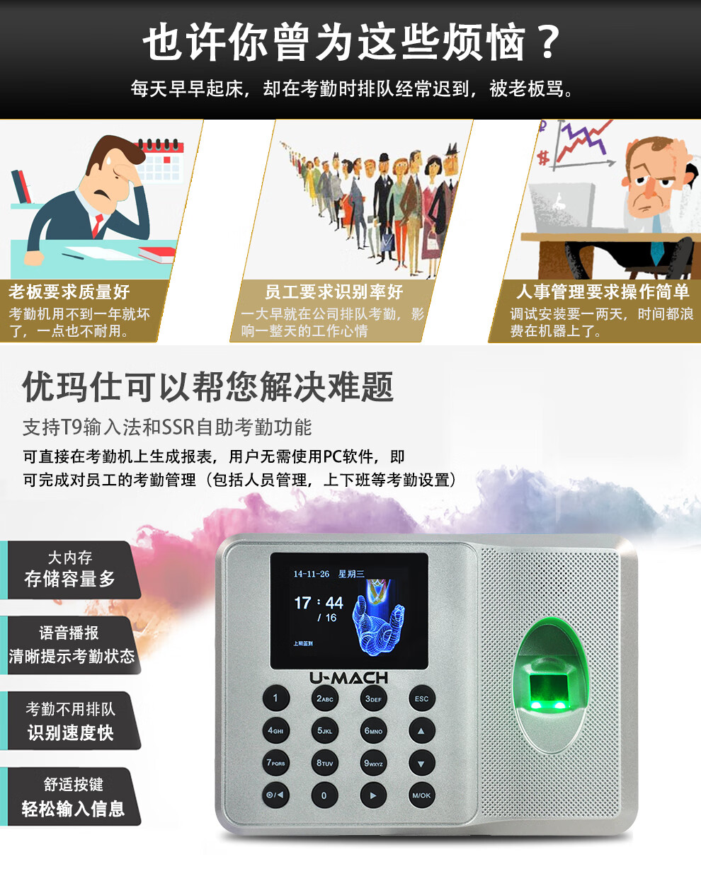 优玛仕 U-MACH智能指纹考勤机打卡机U-Z20