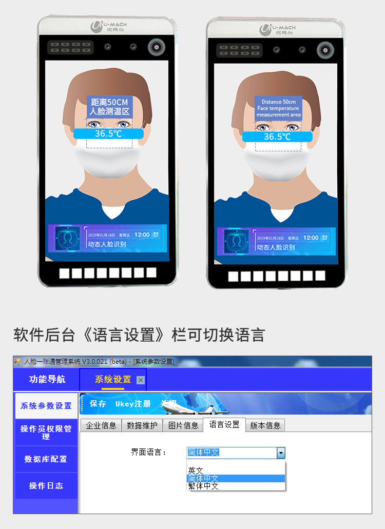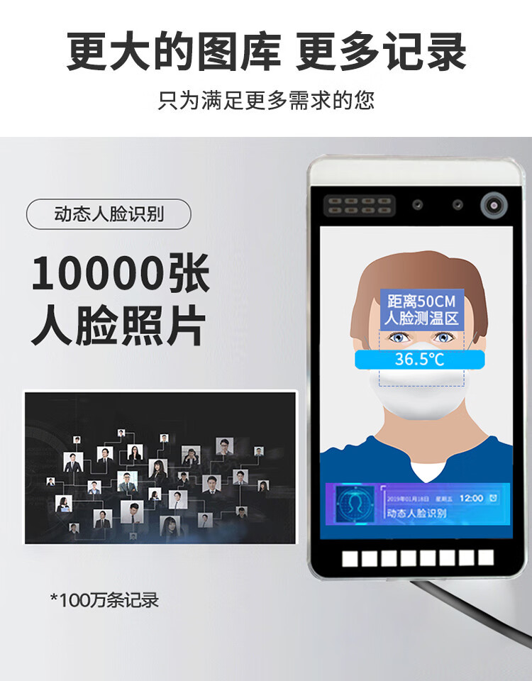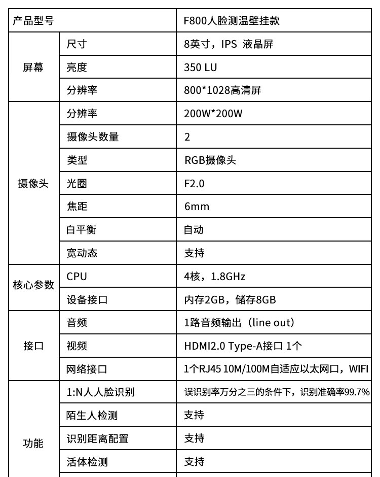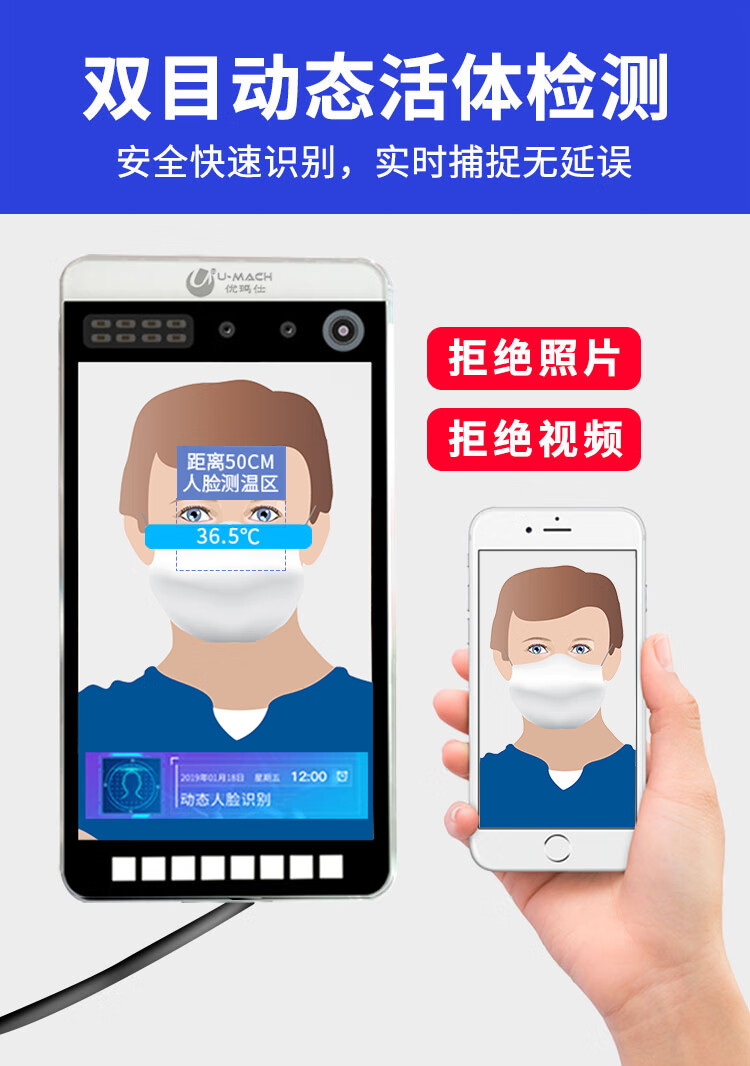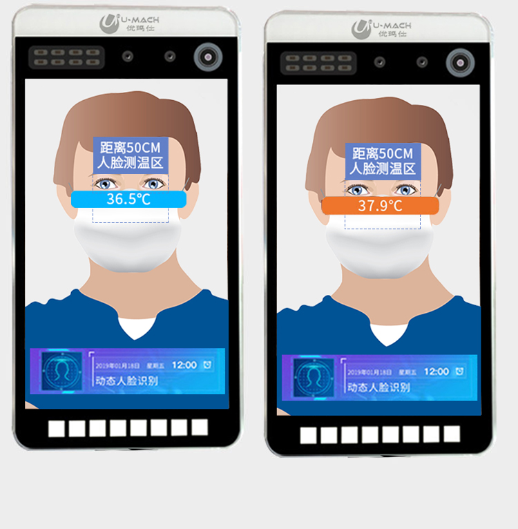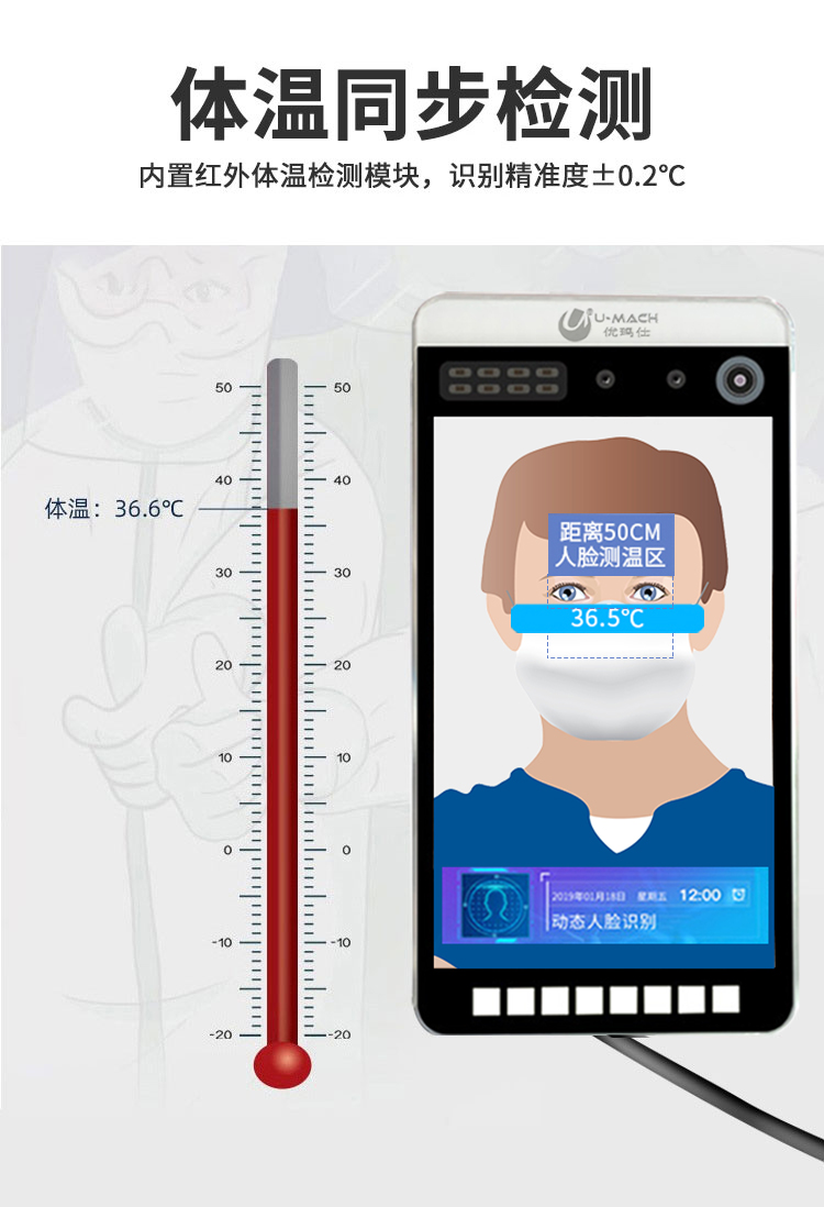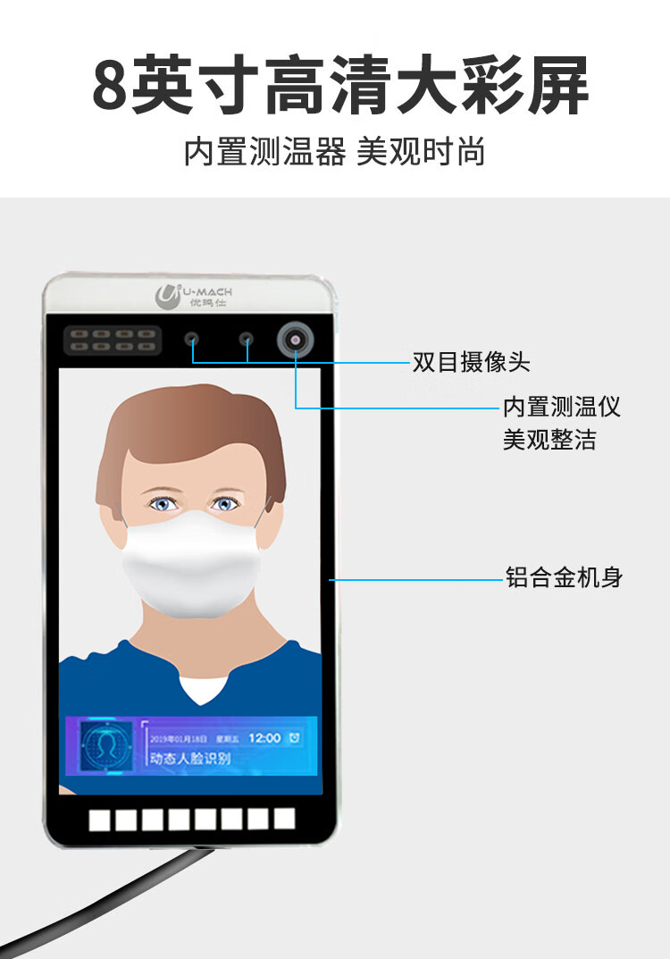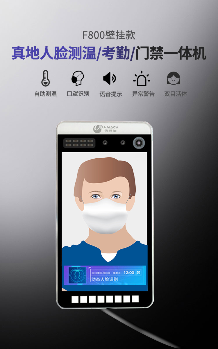 优玛仕 (U-MACH)壁挂式人脸打卡机摄像考勤测温成像仪考勤机 U-F800-A