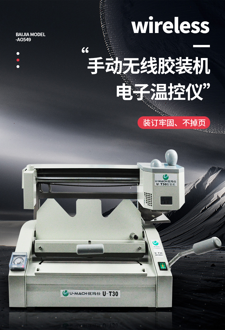 优玛仕 (U-MACH)U-T30无线胶装机手动桌面台式小型书籍标书热熔装订机