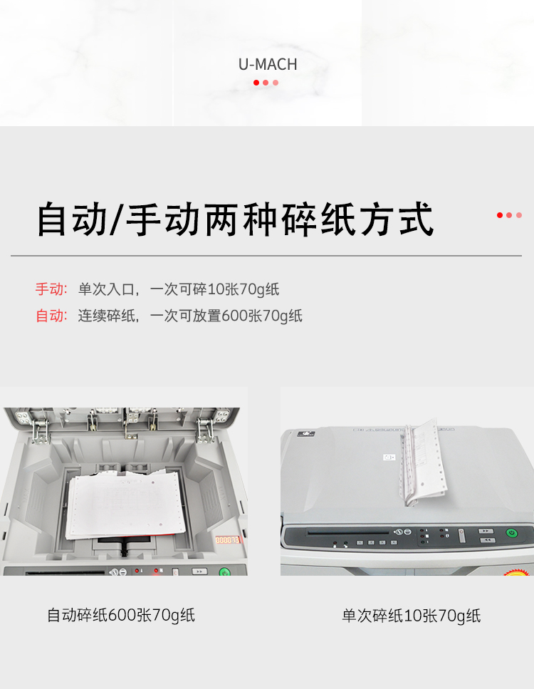 优玛仕 U-MACH 自能碎纸机手动自动两用粉碎机纸张磁卡光盘多功能销毁机U-AF600