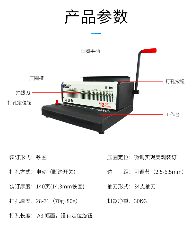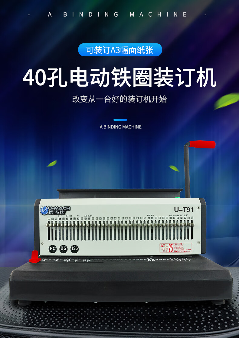 优玛仕 (U-MACH)铁圈装订机电动打孔机自动台历挂历抽刀装订机U-T91