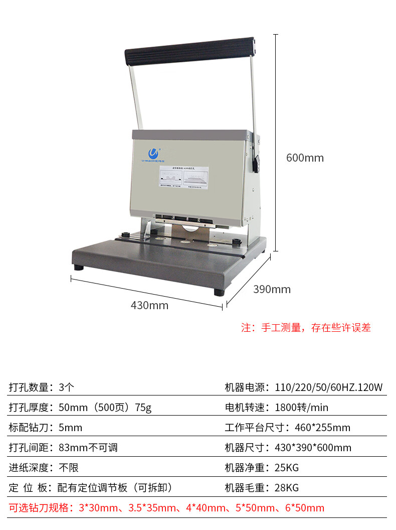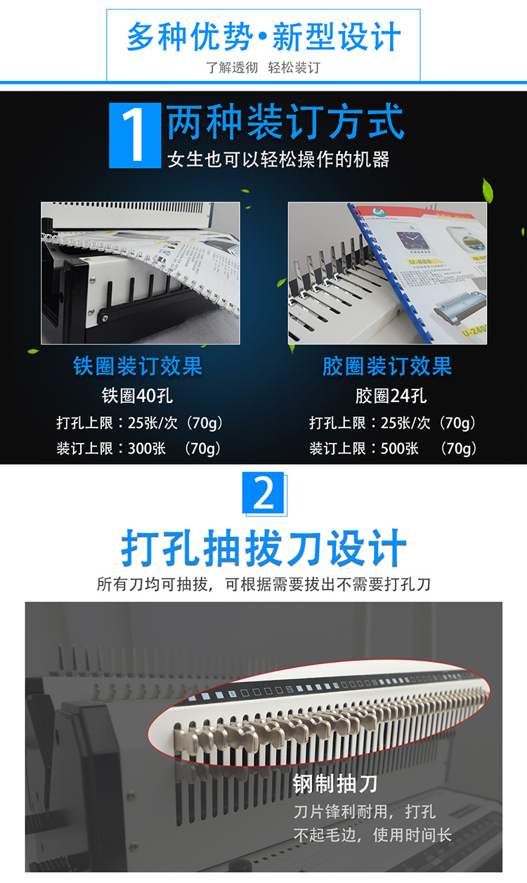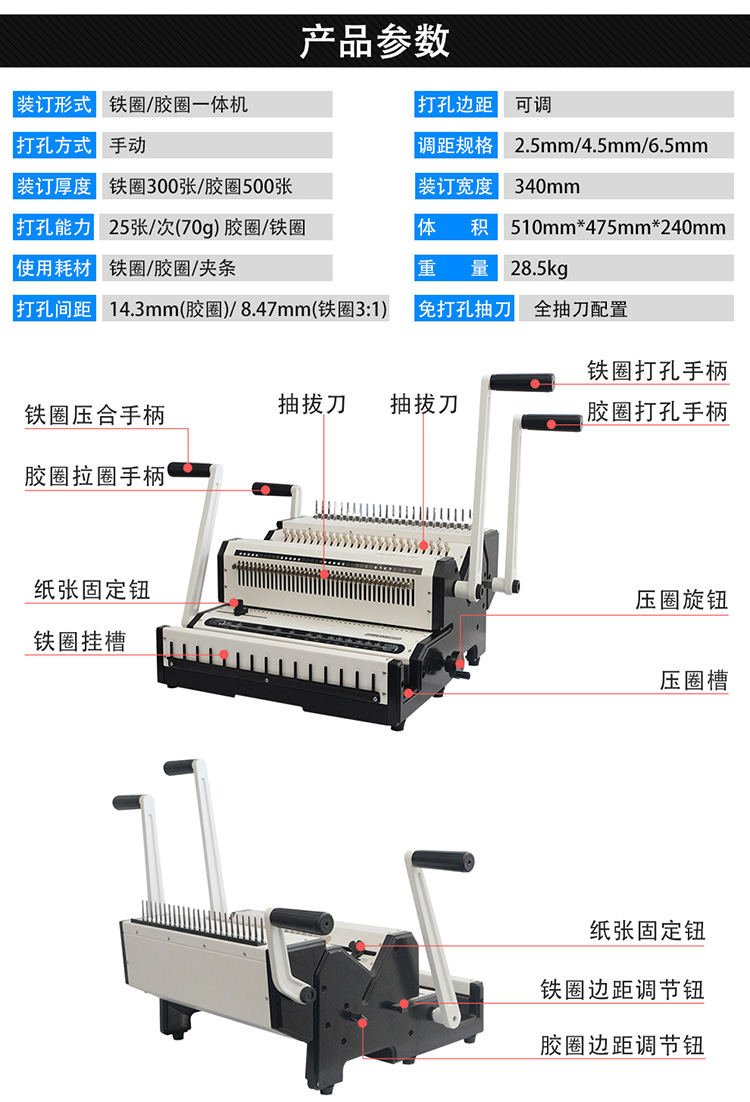 优玛仕(U-MACH)U-CW2500铁圈胶圈多功能打孔机一体机标书合同装订机