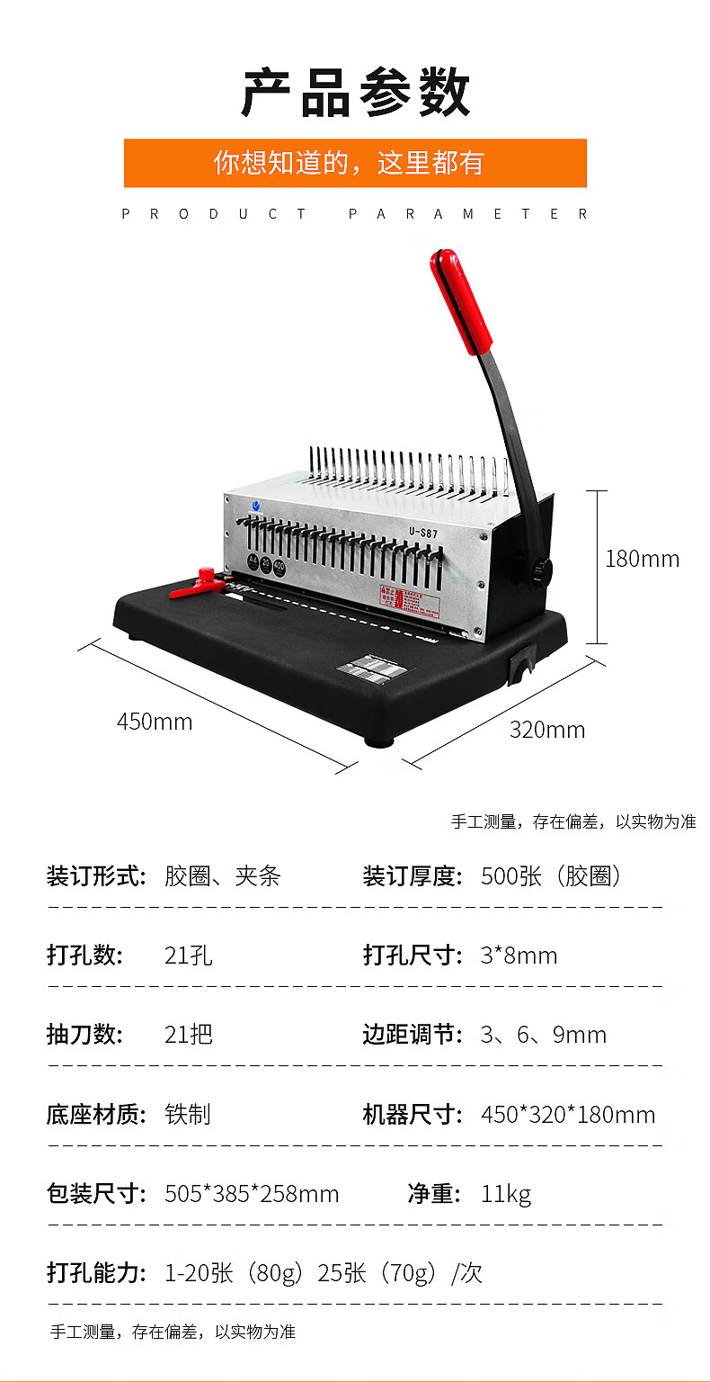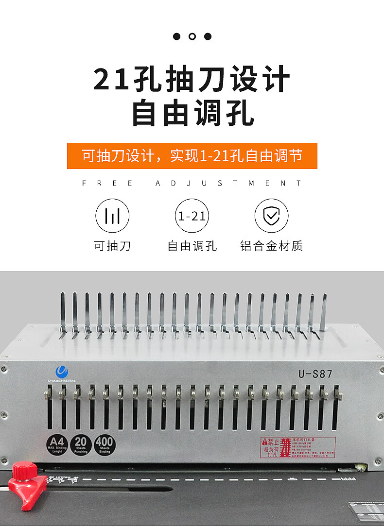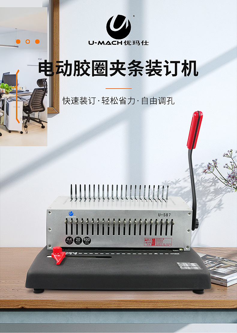 优玛仕(U-MACH)U-S87疏式装订机胶圈夹条两用打孔机21把抽拔刀