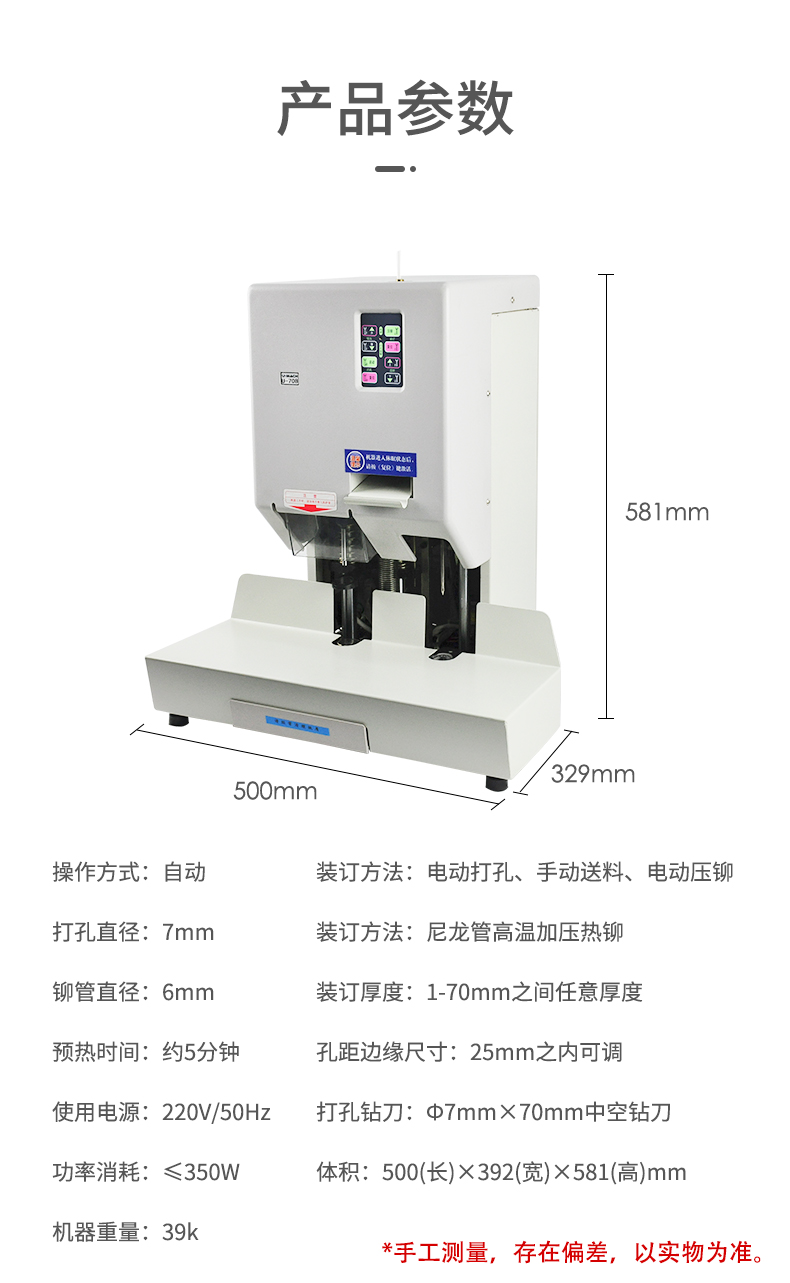 优玛仕(U-MACH)财务凭证装订机7cm电动热铆装订机U-70ZD