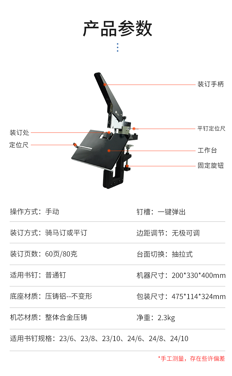 优玛仕 (U-MACH)U-206骑马装订机手动平钉A3A4中缝订书机装订机