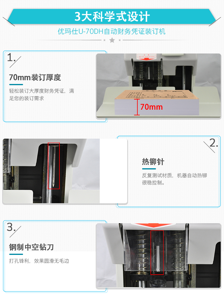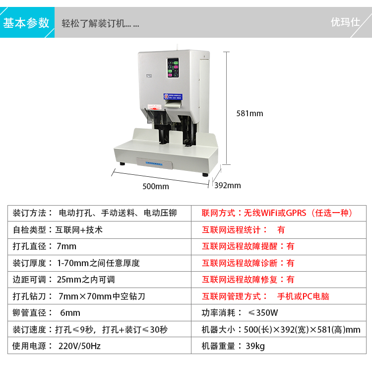 优玛仕(U-MACH)U-70DH 自动财务装订机 互联网远程监控诊断打孔机(可装订70mm)