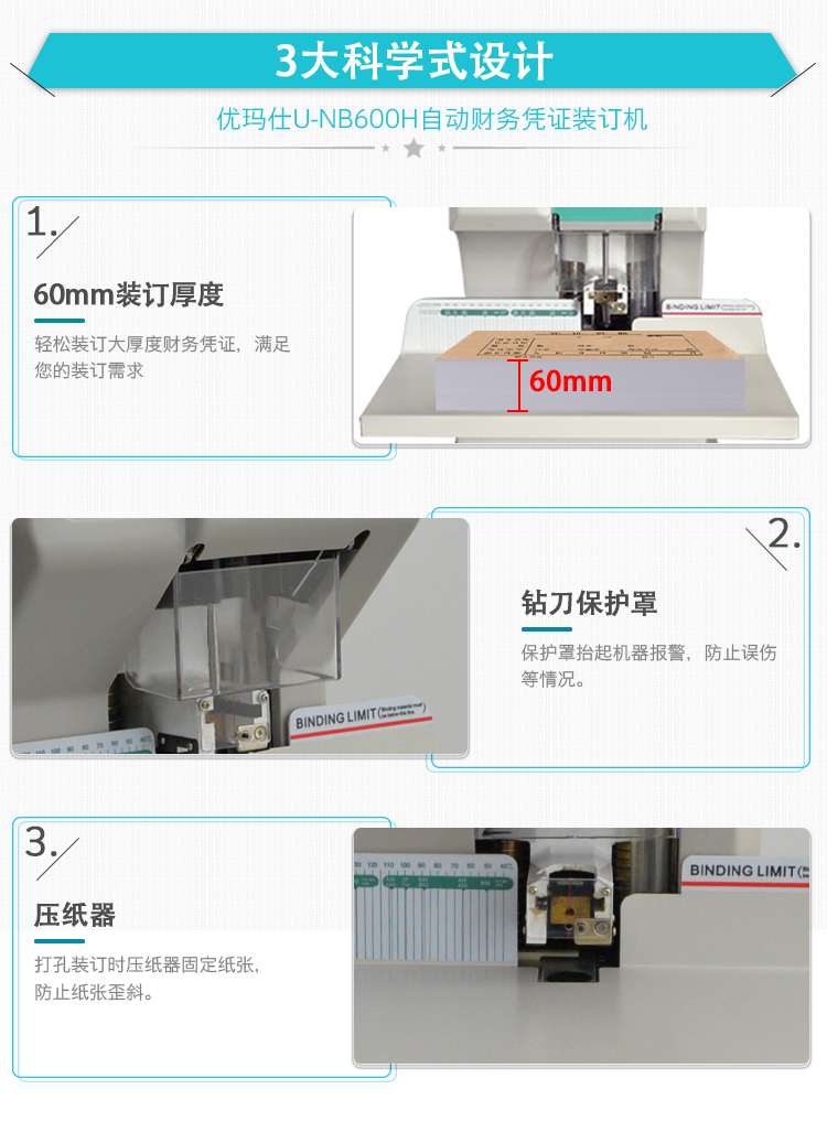 优玛仕(U-MACH)U-NB600H 全自动远程互联网+检测服务 财务装订机60mm装订厚度