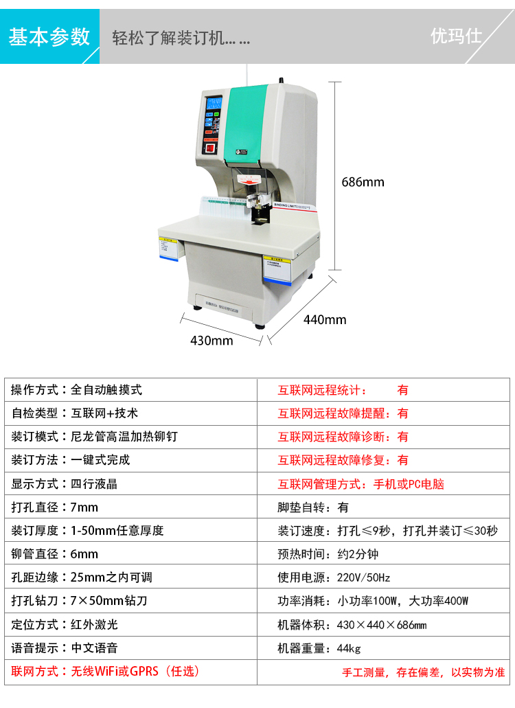 优玛仕(U-MACH)U-NB200H 全自动远程 互联网+检测服务财务装订机
