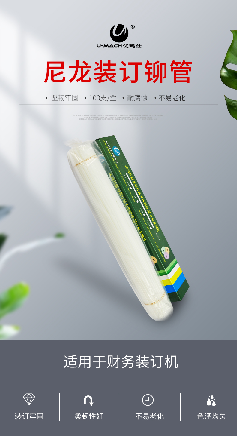 优玛仕 U-MACH 5.2mm装订铆管凭证装订机装订铆管尼龙管