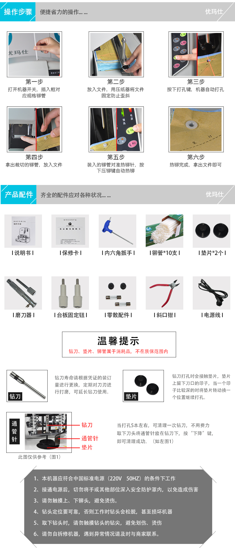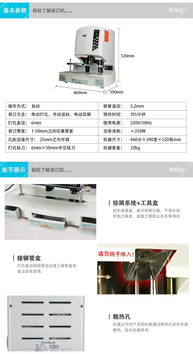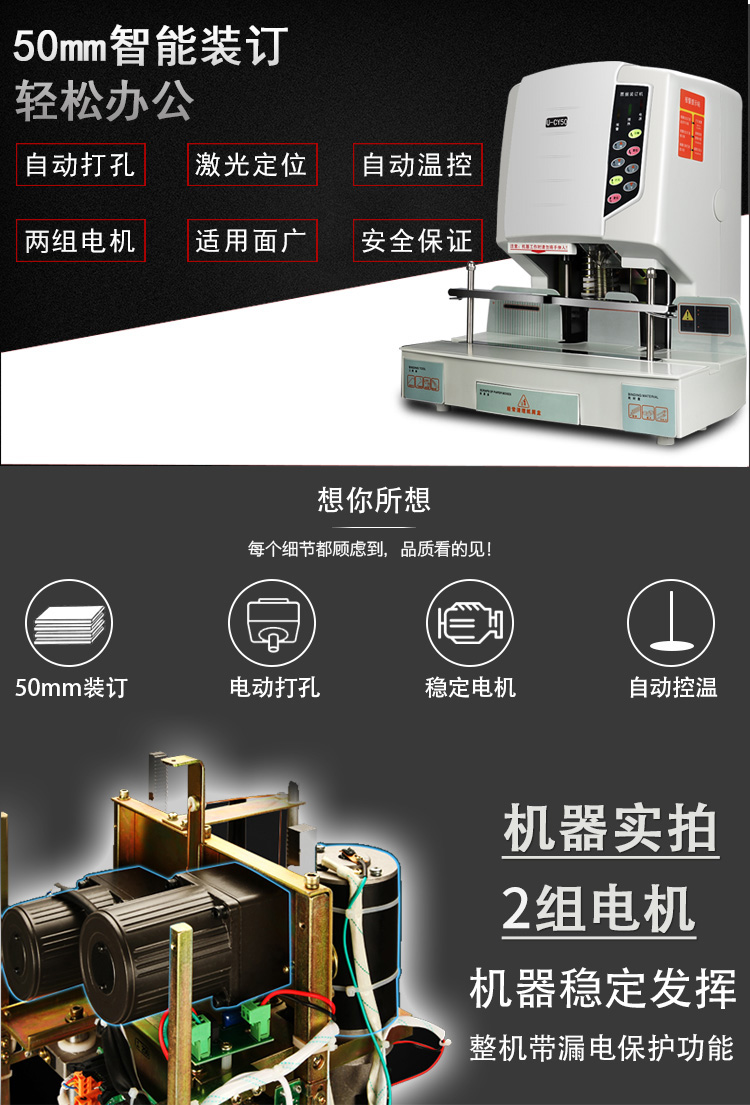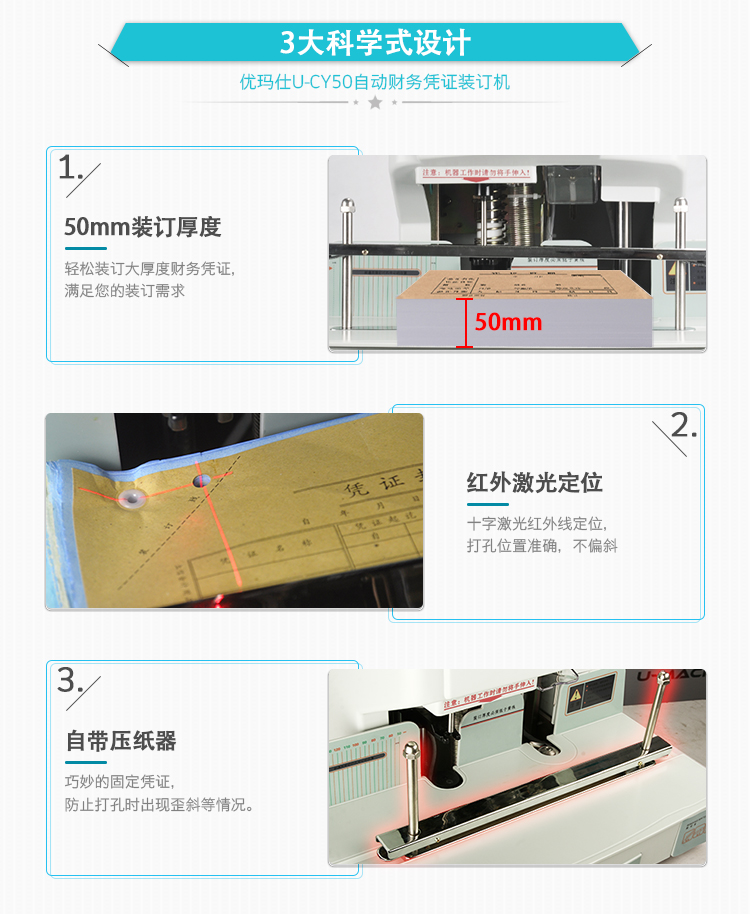 优玛仕(U-MACH)电动凭证装订机 50mm财务档案凭证铆管电动打孔装订 激光定位 U-CY50