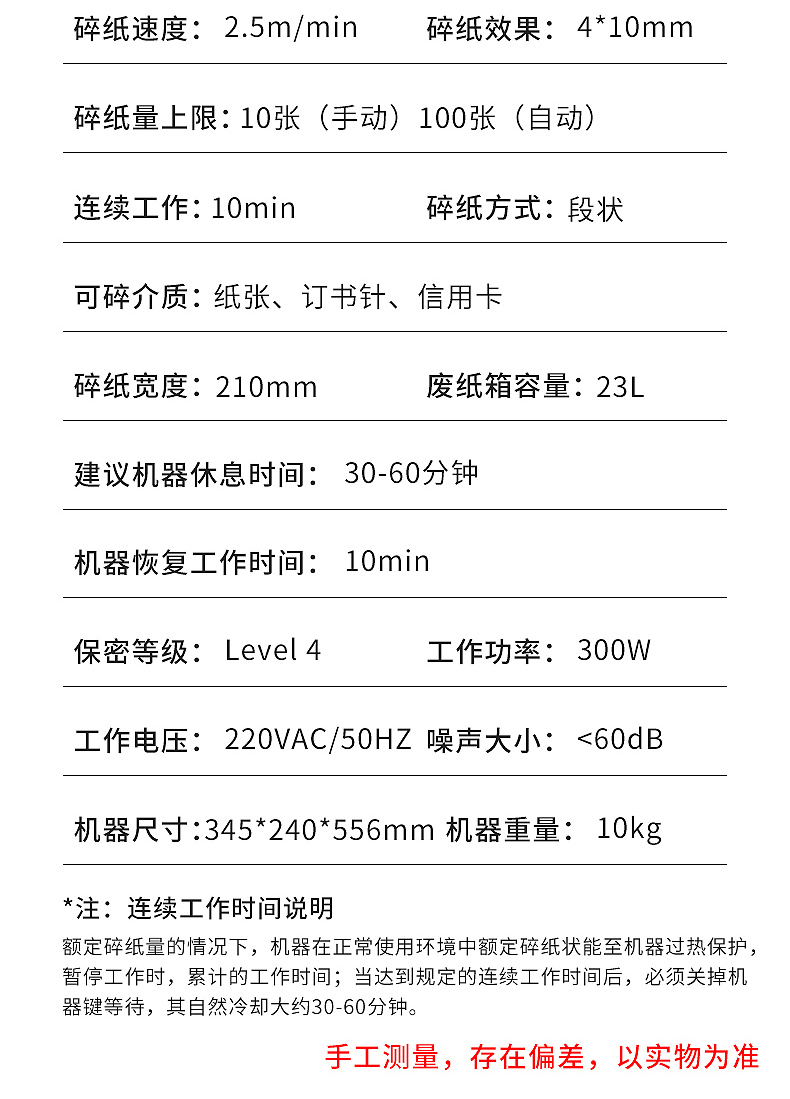 连续碎纸时间:1-10分钟