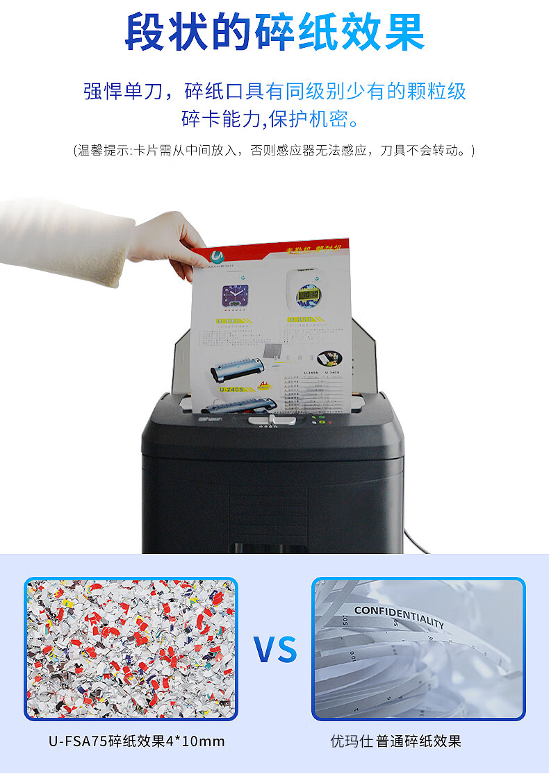 优玛仕 (U-MACH)碎纸机自动手动碎纸粉碎机文件保密碎纸文件凭证碎纸机U-FSA75