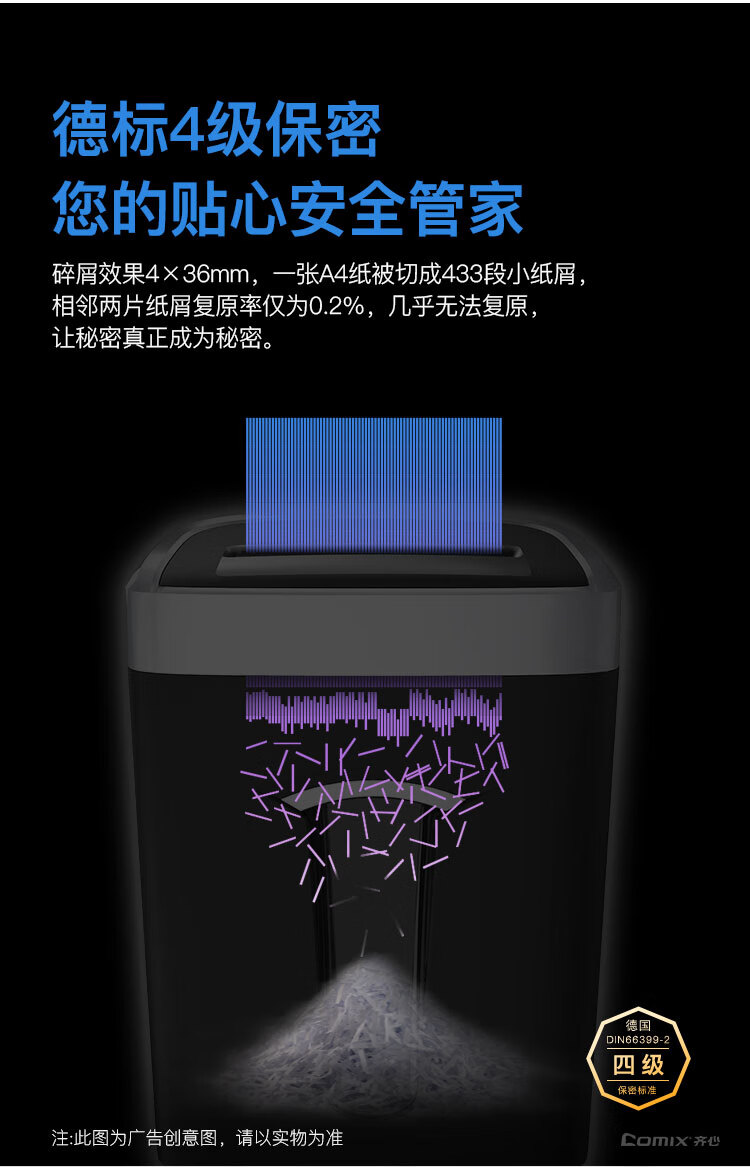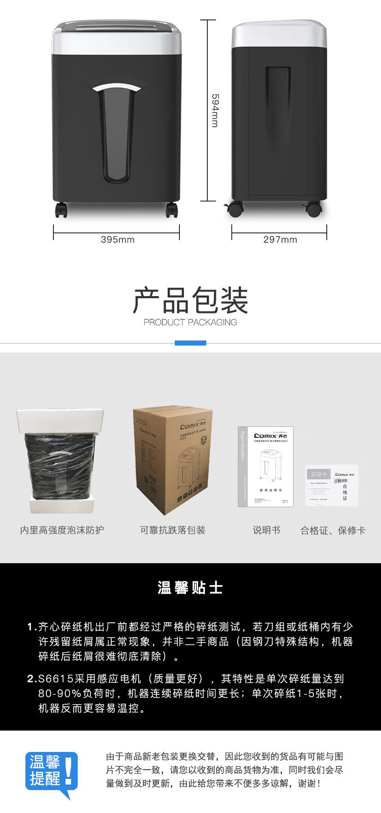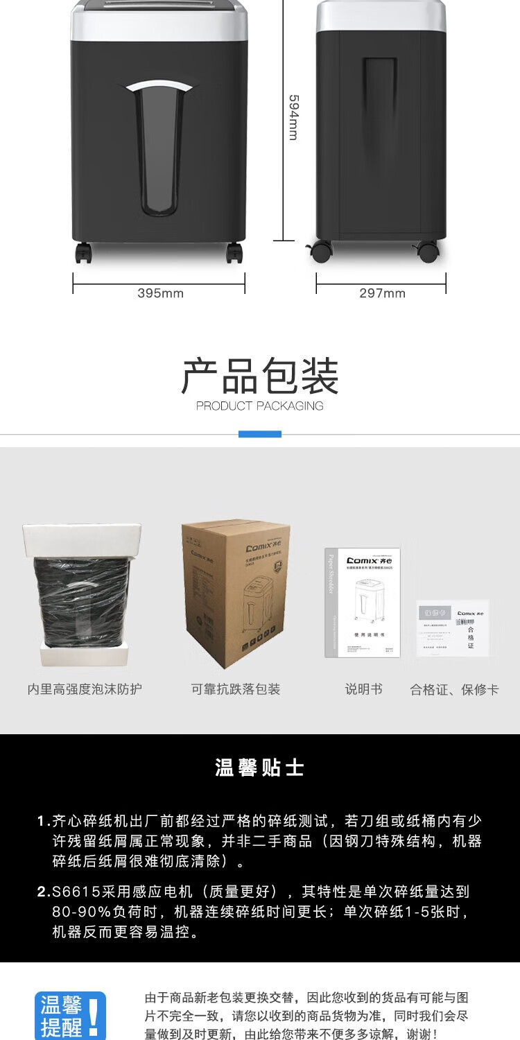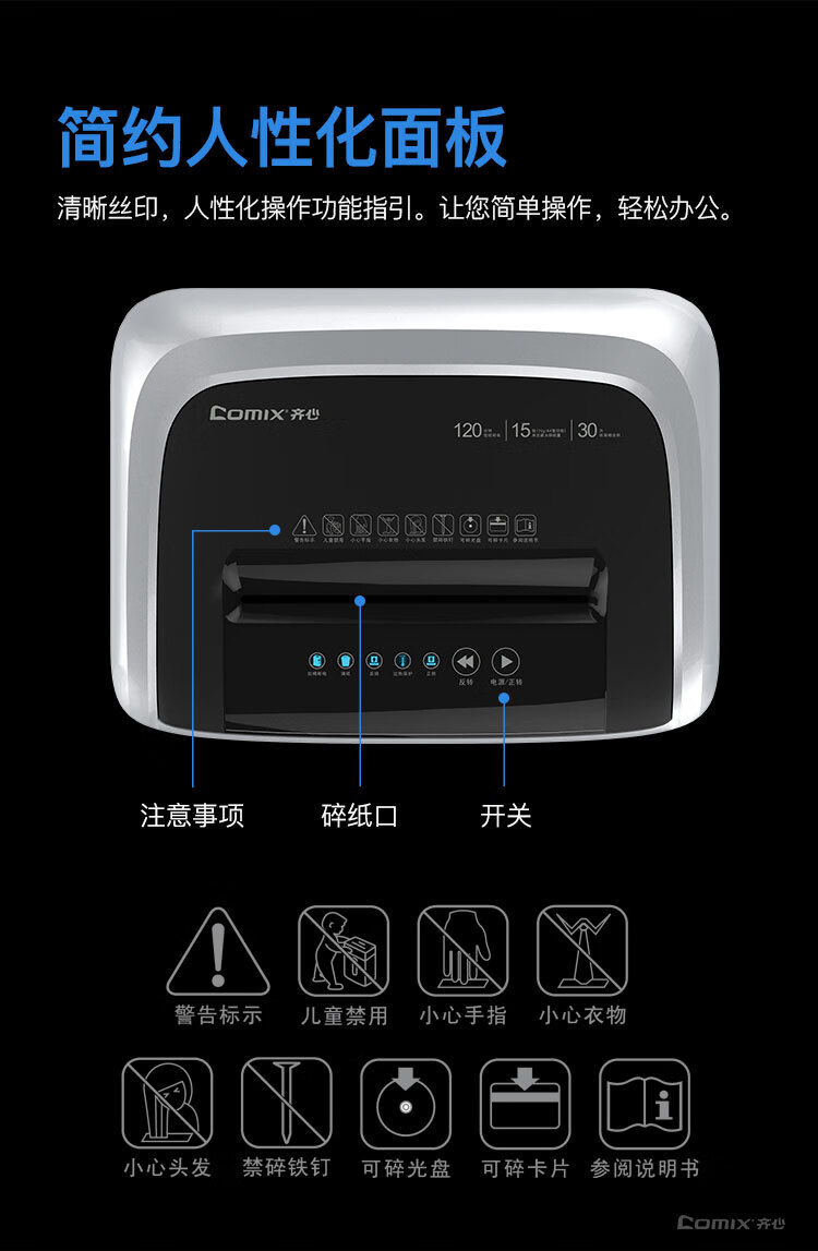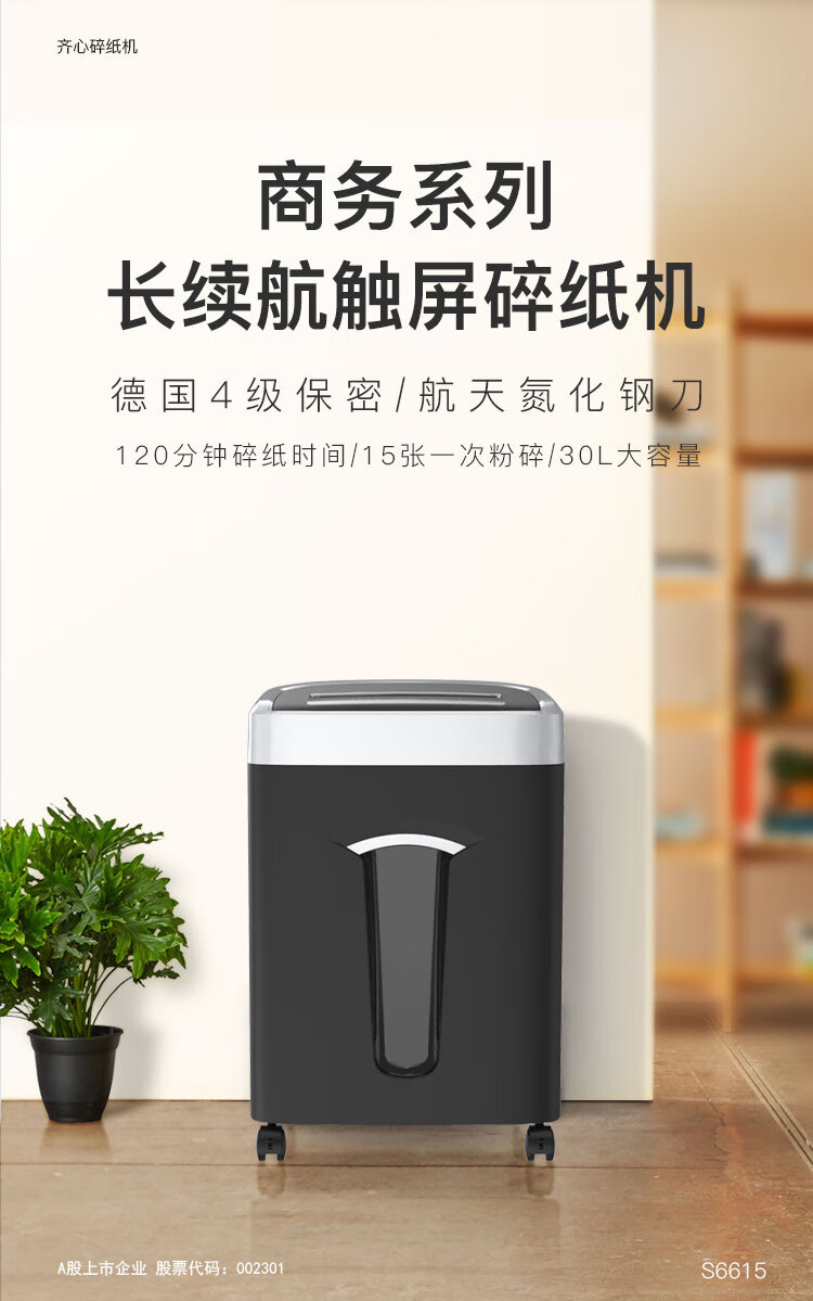 齐心(COMIX)S6615 长续航商务系列触屏式碎纸机 S6615-QX01银黑