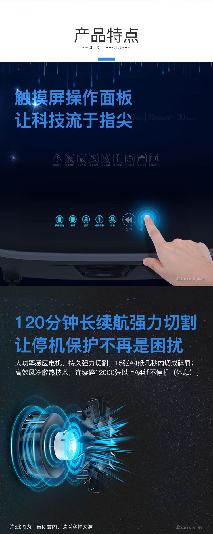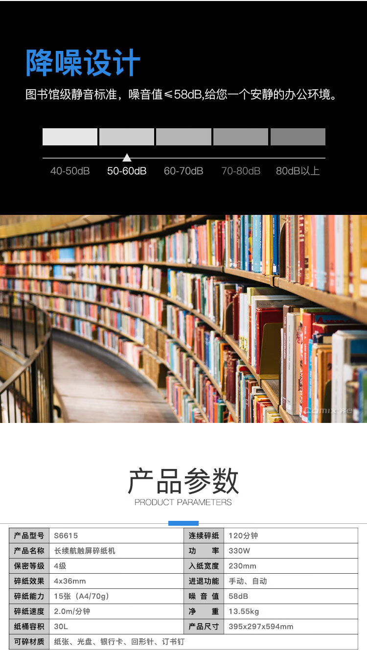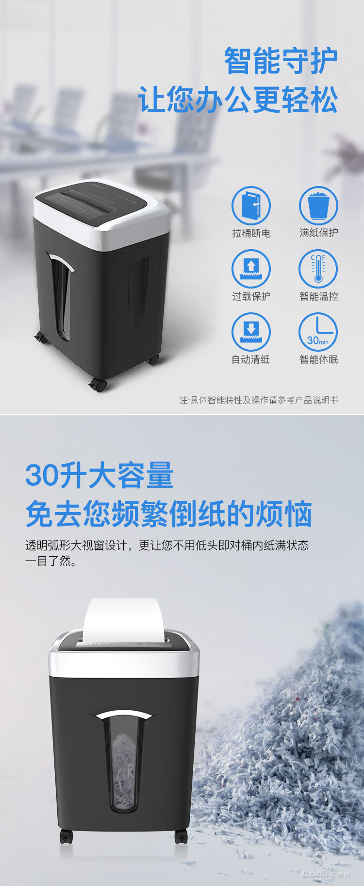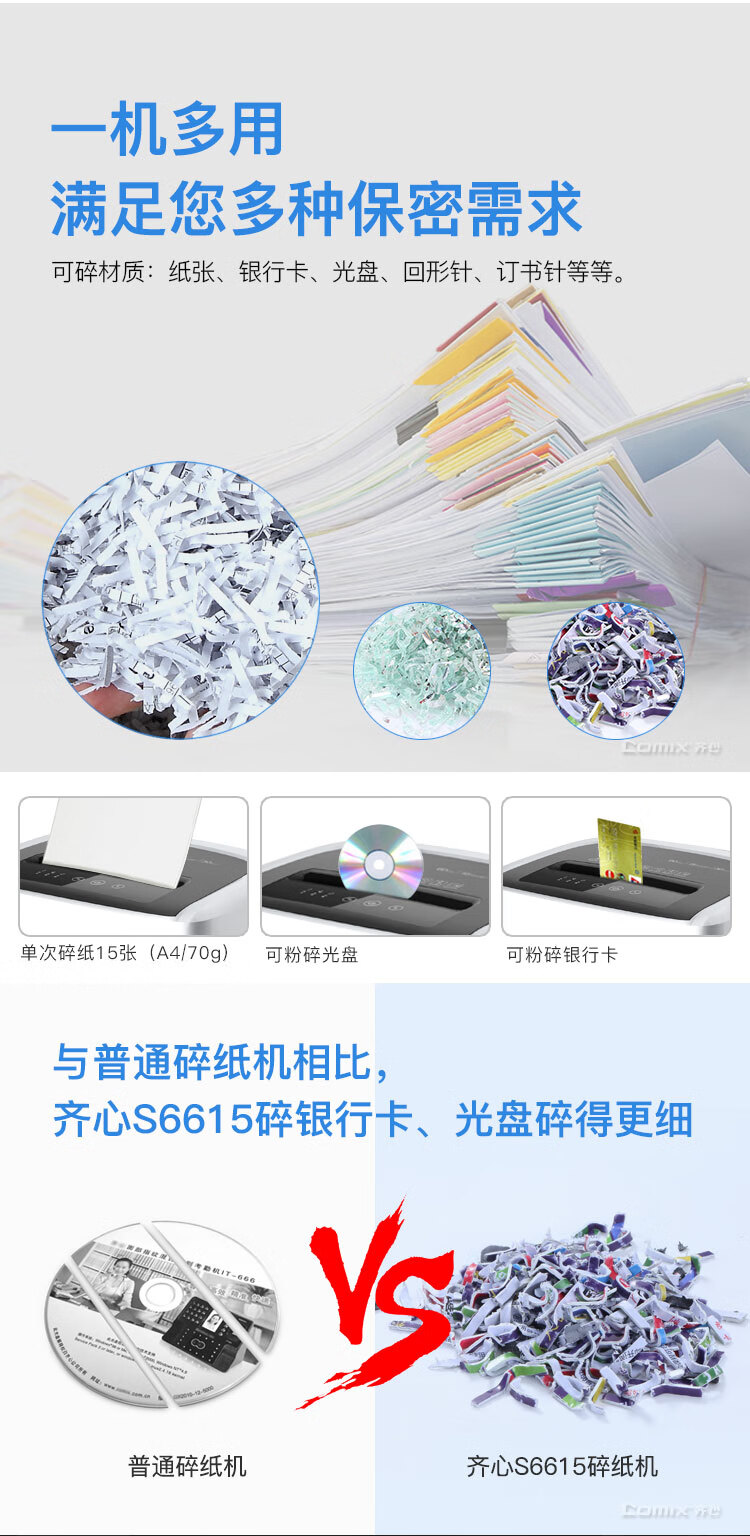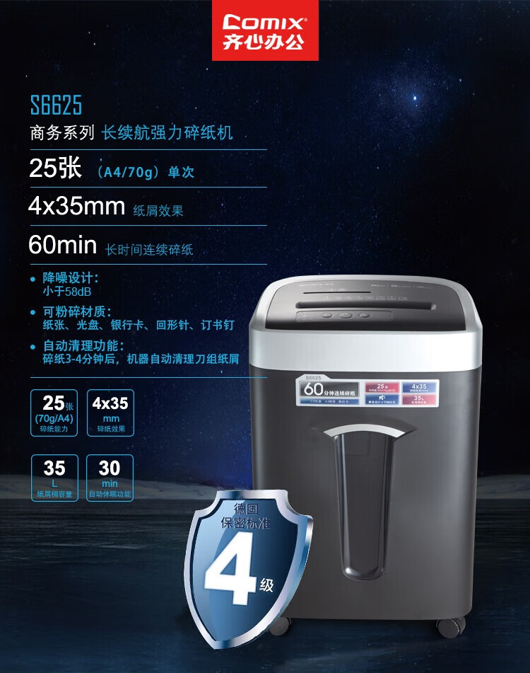 齐心(COMIX)S6625 长续航商务系列强力碎纸机 S6625A-QX01 银黑