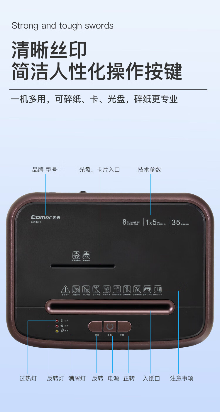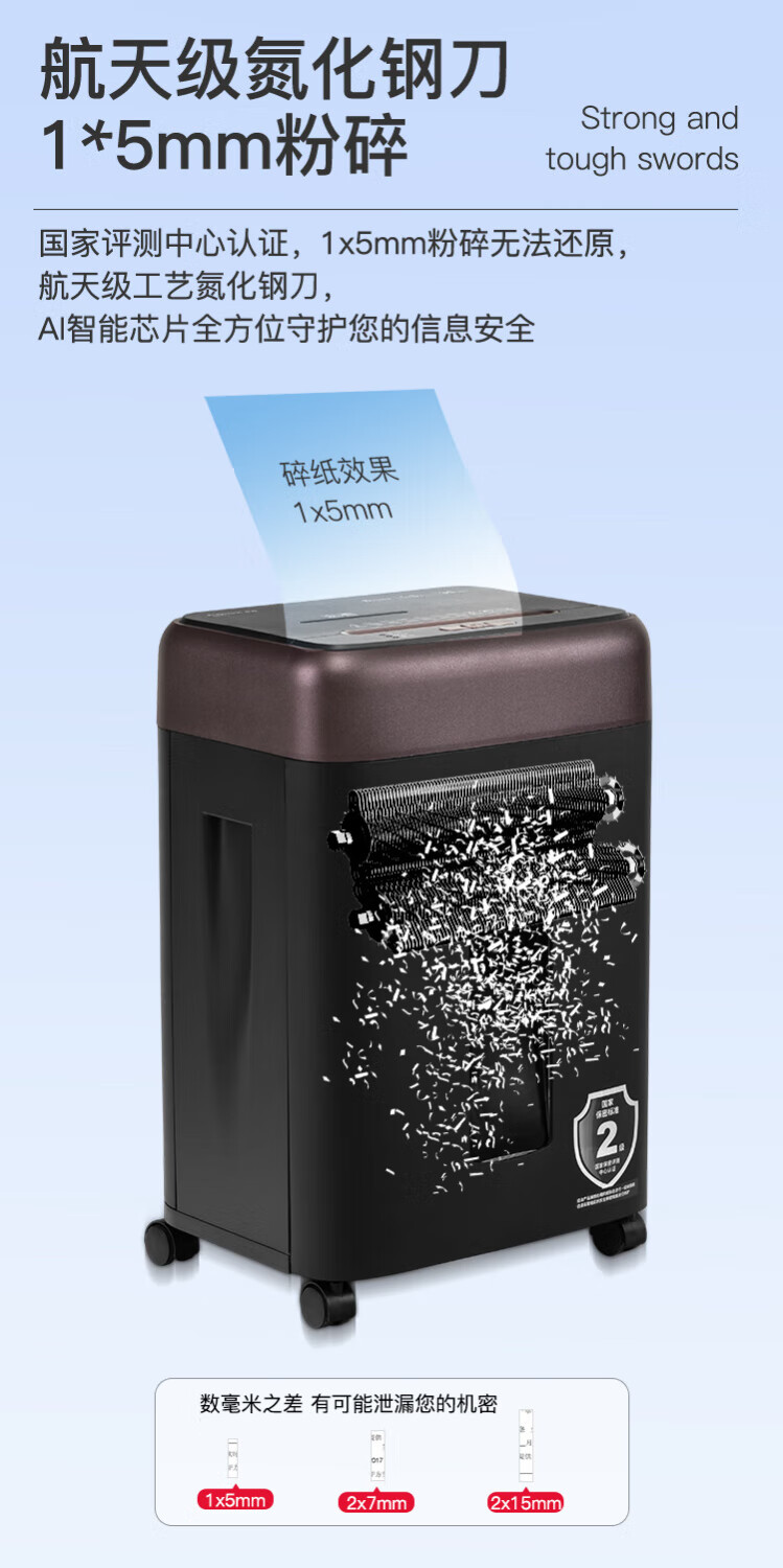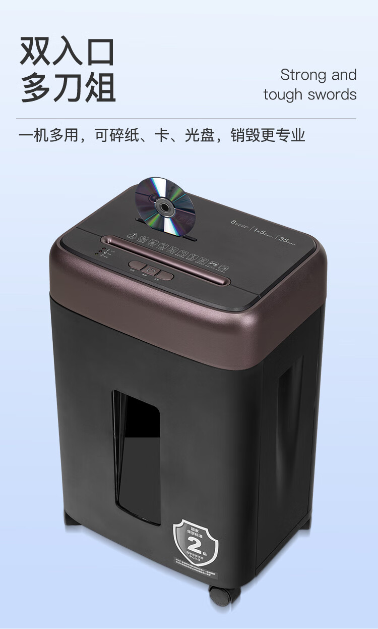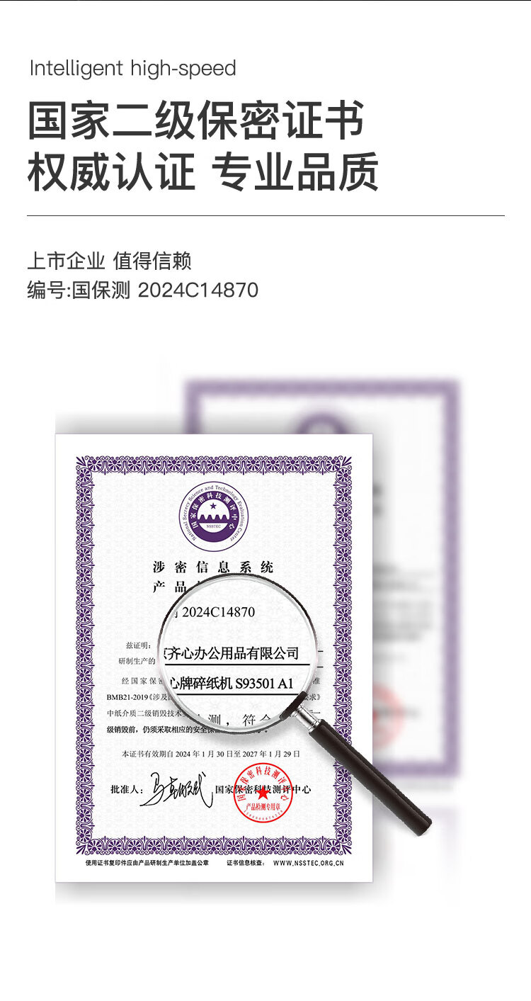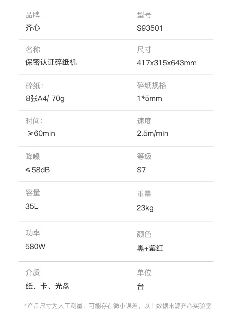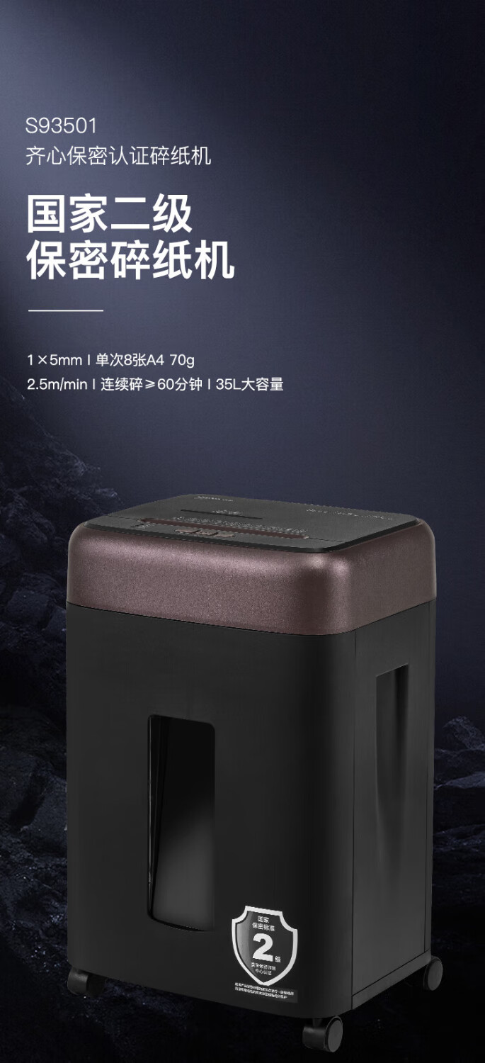 齐心 S93501 国家二级保密专业销毁商业碎纸机 S6605C-QX02 黑+紫红