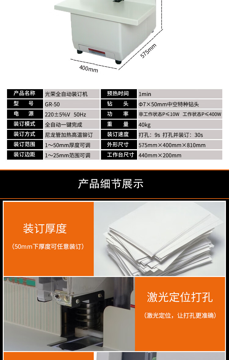 光荣(GR)50全自动财务凭证装订机 电动打孔机热熔铆管会计档案