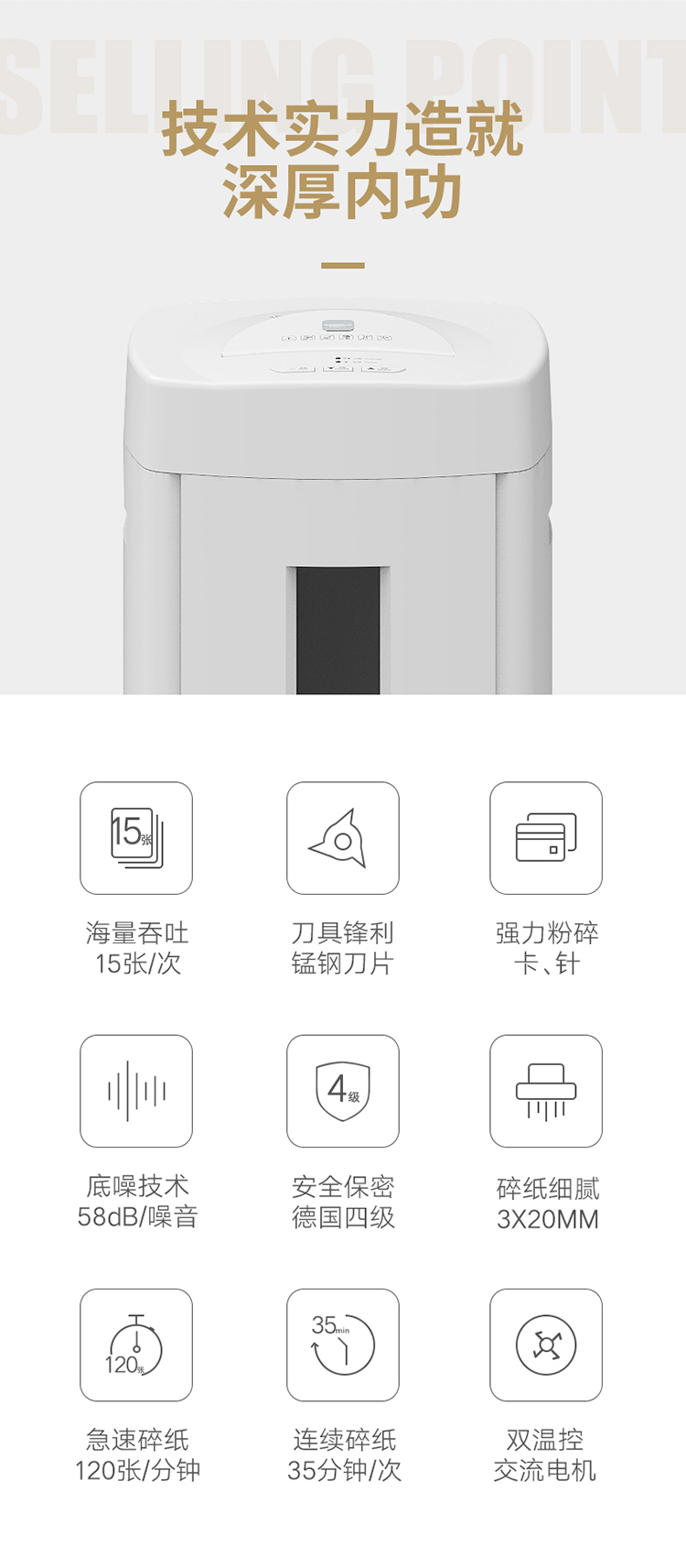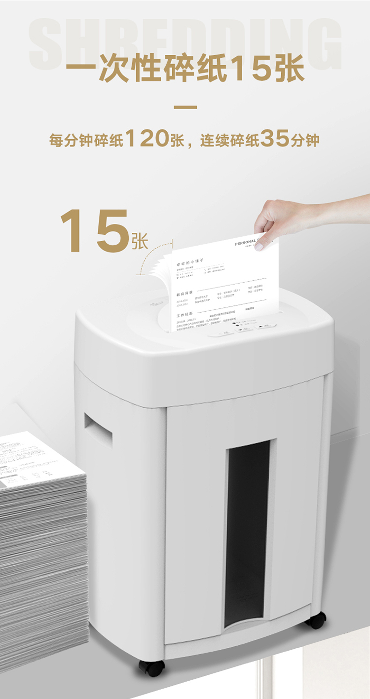 三木(SUNWOOD)4级保密办公商用碎纸机 (单次15张 持续35分钟 25L 可碎纸,卡,回形针、订书针) MSD9711
