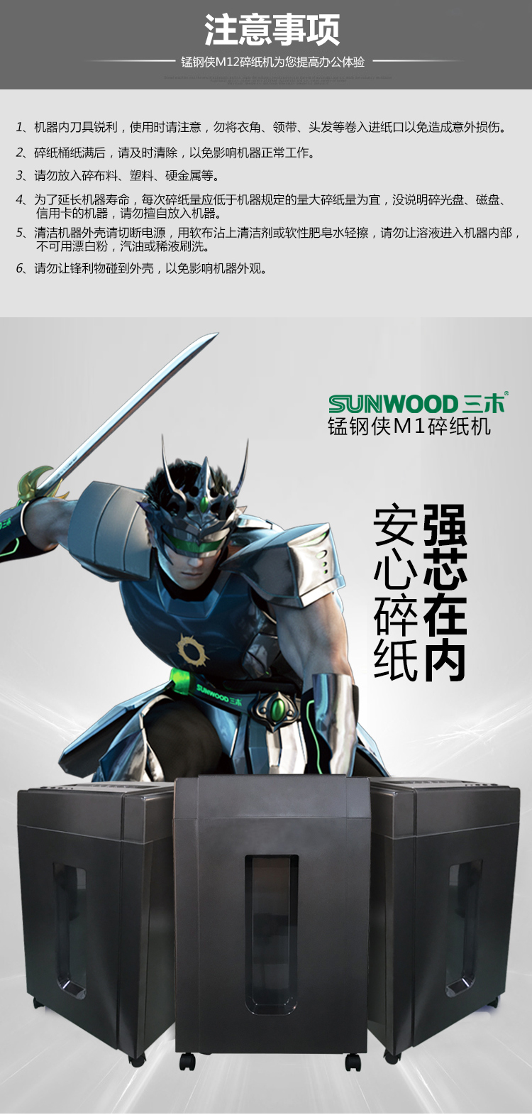 三木(SUNWOOD)4级保密办公商用碎纸机 (单次12张 持续35分钟 25L 可碎纸,回形针、订书针) M33