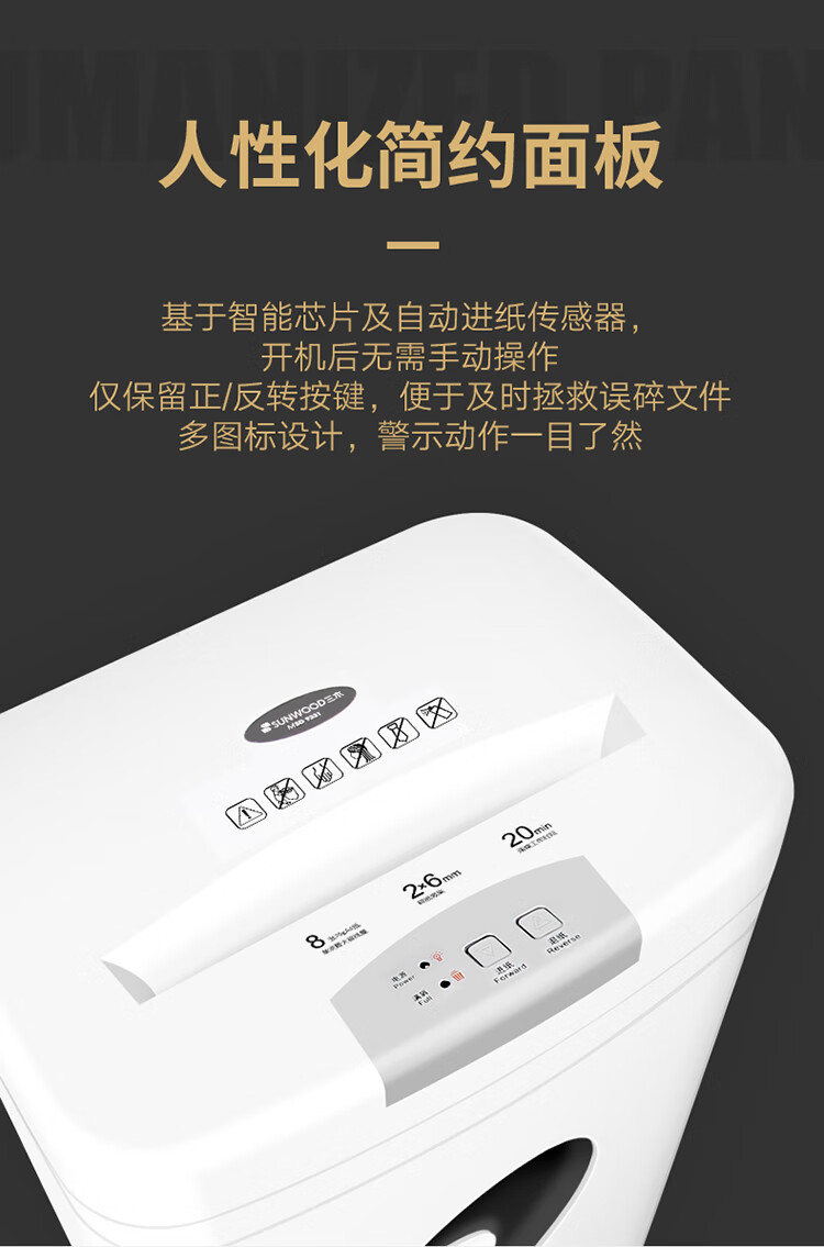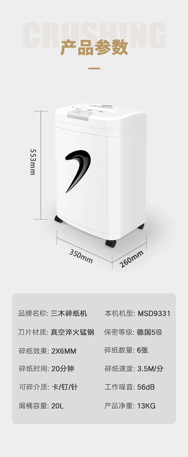 三木(SUNWOOD)5级保密办公商用碎纸机 (单次6张 持续20分钟 20L 可碎纸,卡,回形针、订书针) MSD9331