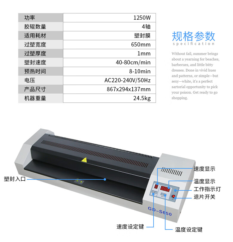 金典 GOLDEN GD-S650塑封机大幅面过塑机 文件塑封机