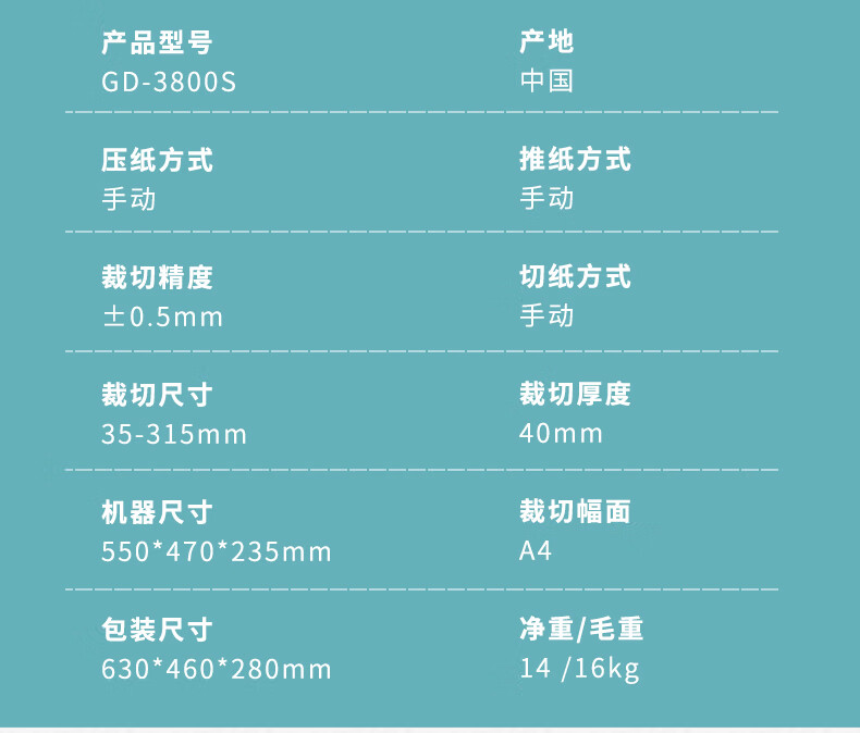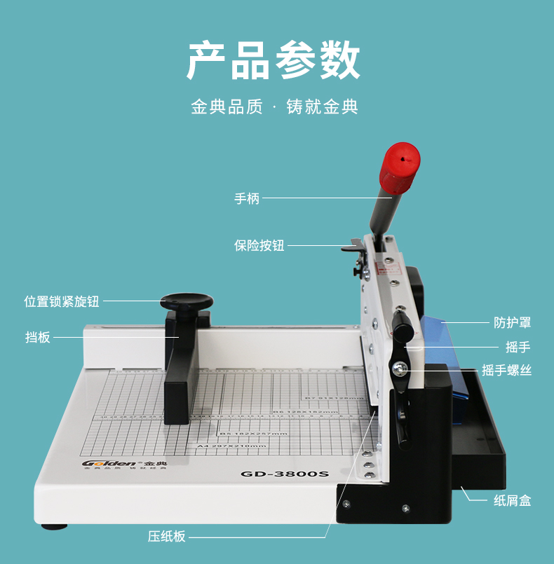 金典 GOLDEN GD-3800S切纸机 手动裁纸刀 桌面型标书裁切机