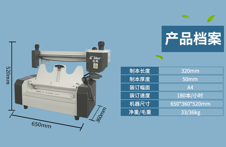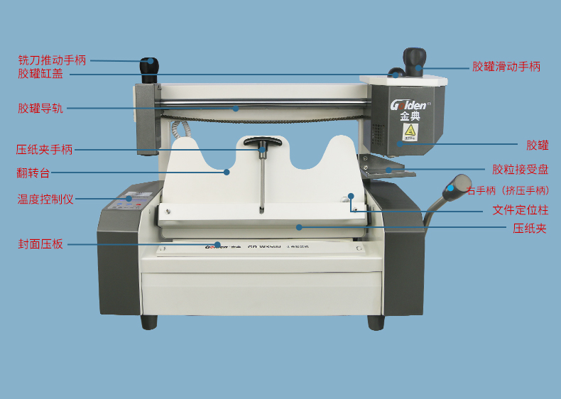 金典 GOLDEN GD-W3500胶装机 A4幅面 无线桌面式胶装机 标书文件书籍论文报告合同热熔胶粒装订机