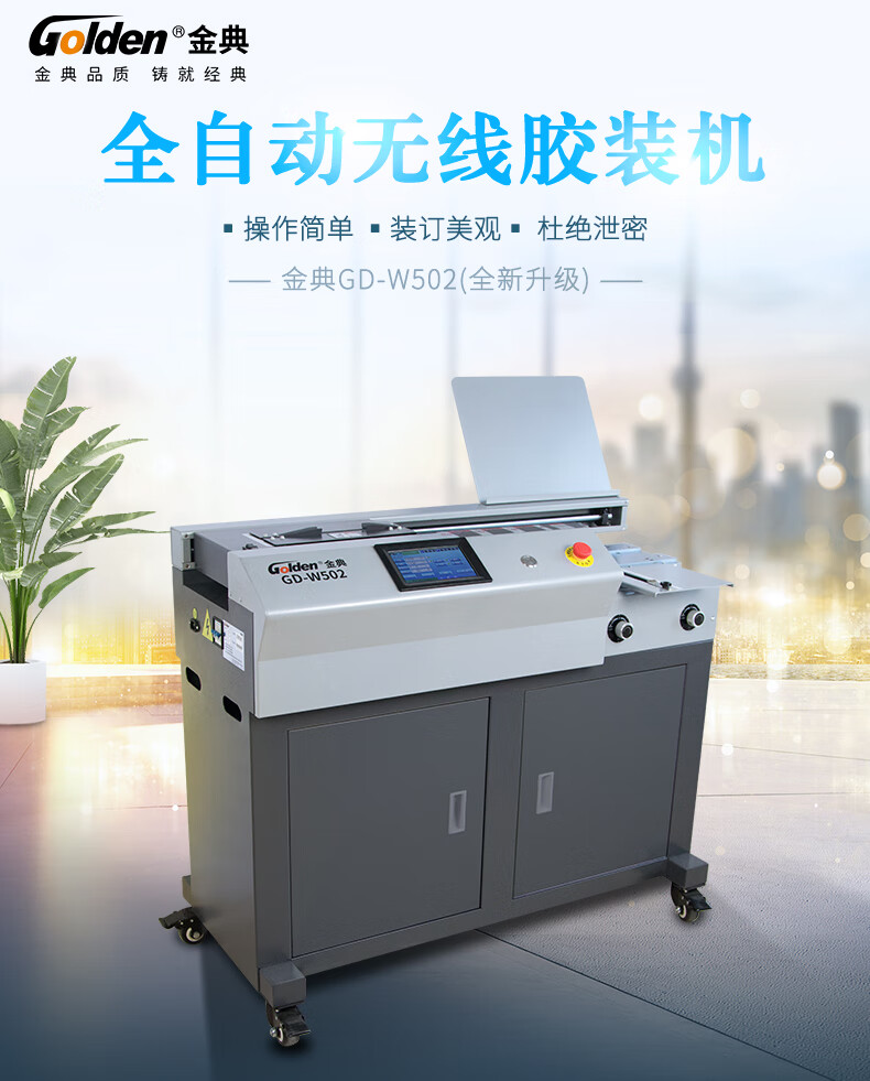 金典 GOLDEN GD-W502胶装机 全自动柜式胶装机 A4幅面 论文报告合同 热熔胶粒装订机