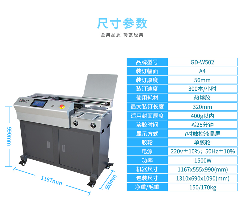 金典 GOLDEN GD-W502胶装机 全自动柜式胶装机 A4幅面 标书 文件 书籍论文报告合同 热熔胶粒装订机