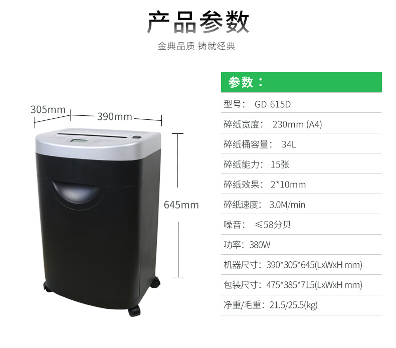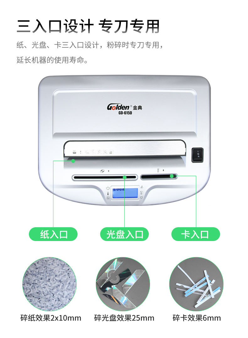 金典 GOLDEN GD-615D碎纸机 商用碎纸机 高保密碎纸机