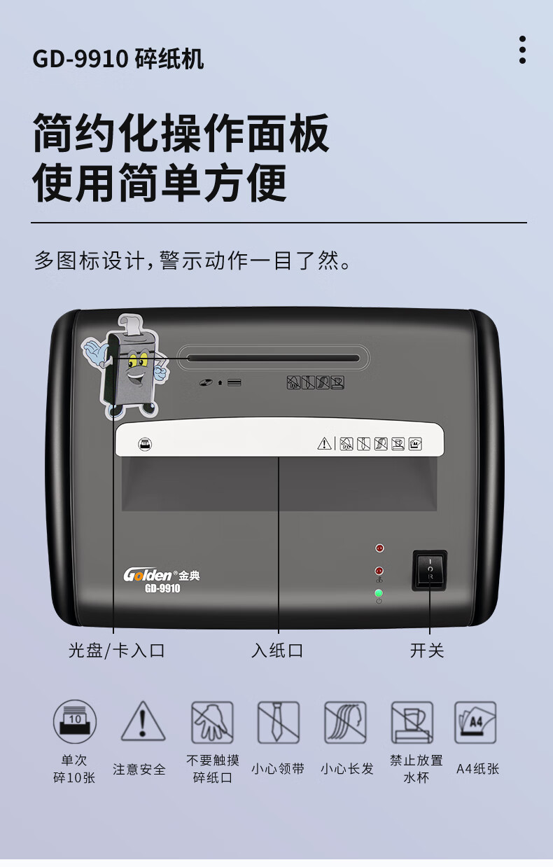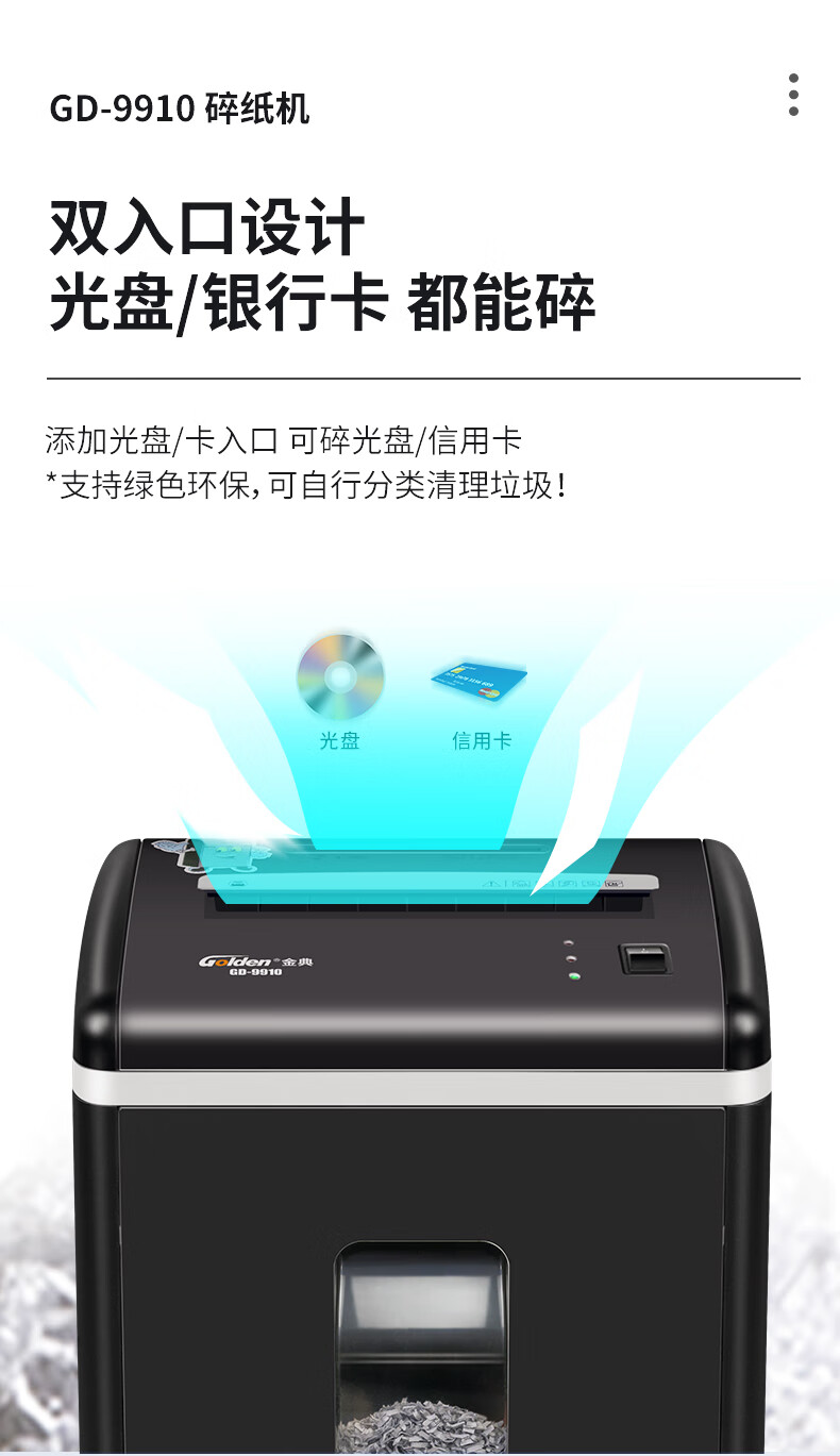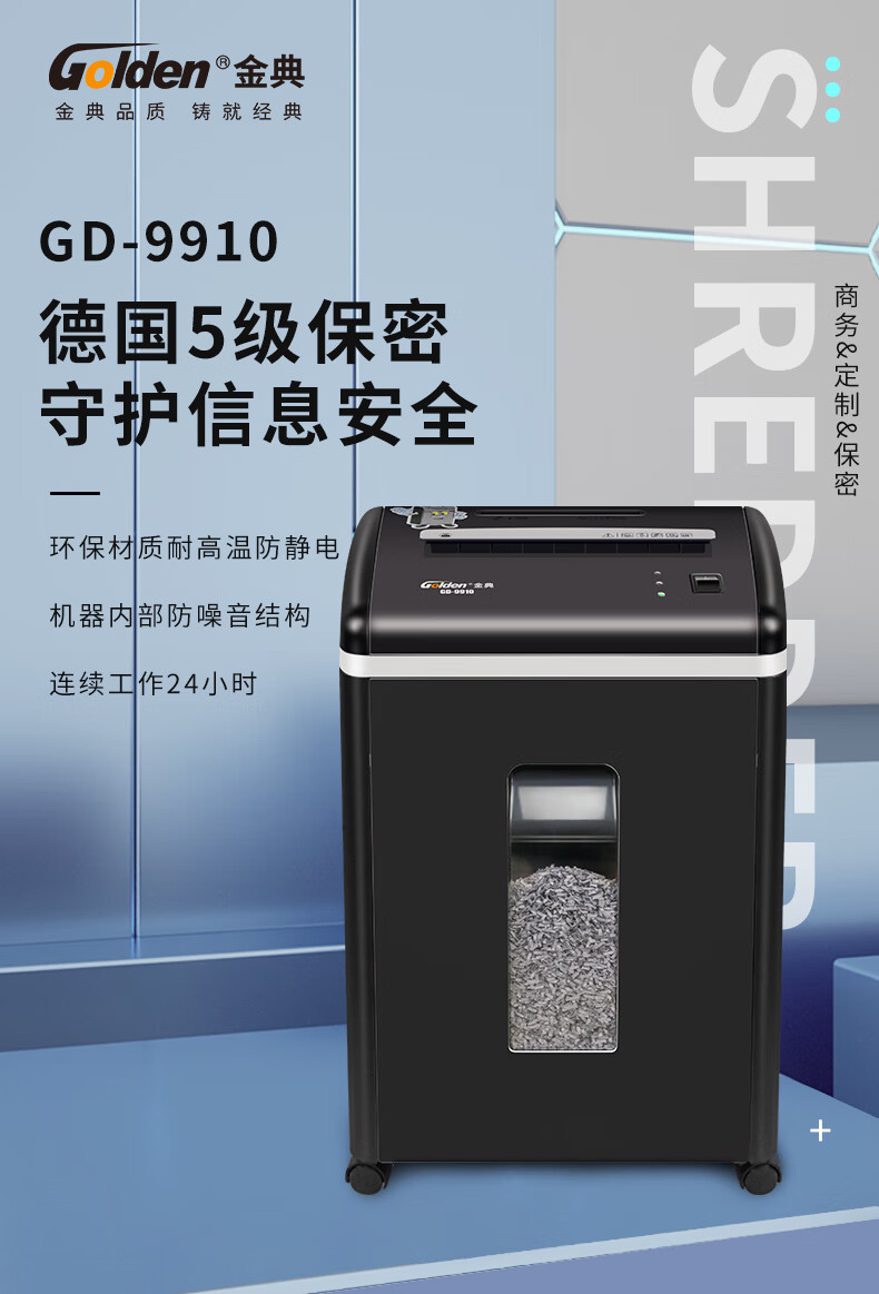 金典 GOLDEN GD-9910碎纸机 24小时不停机碎纸机 文件粉碎机