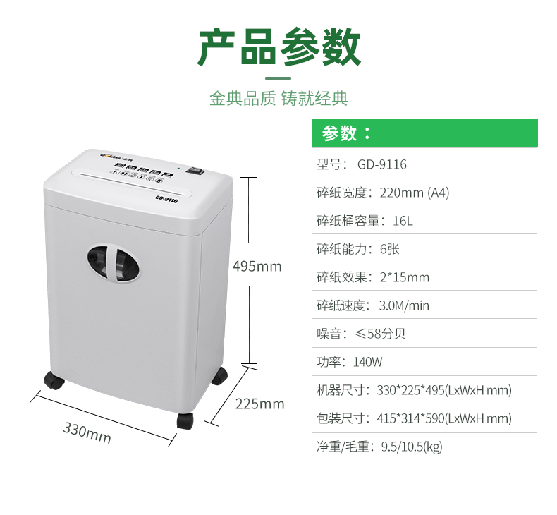 金典(Golden)GD-9116碎纸机电动办公碎纸机 粒状家用大功率 碎纸机