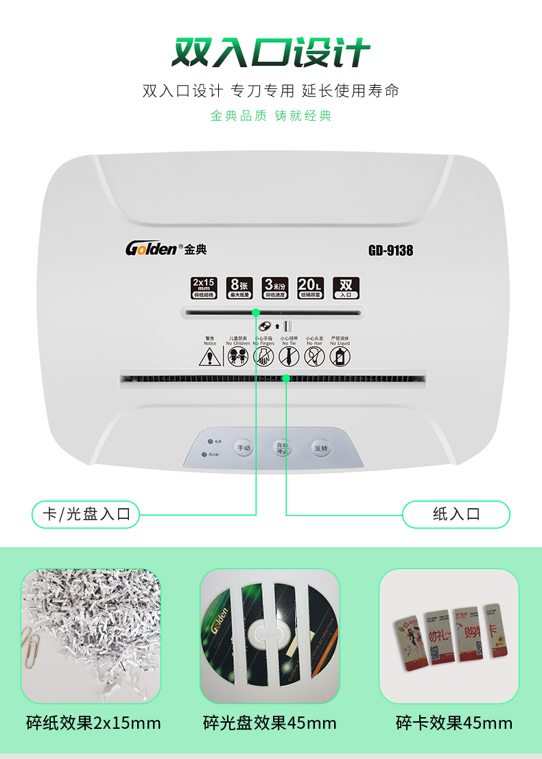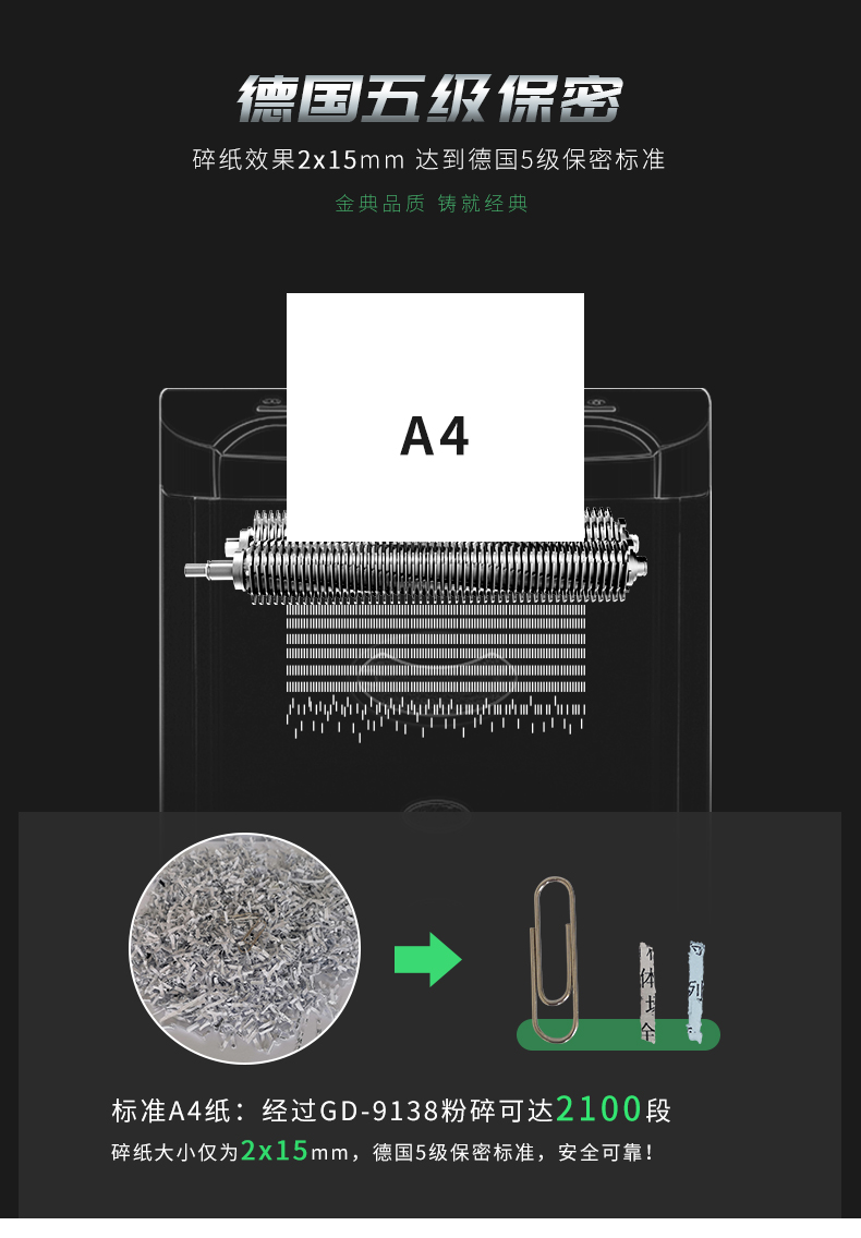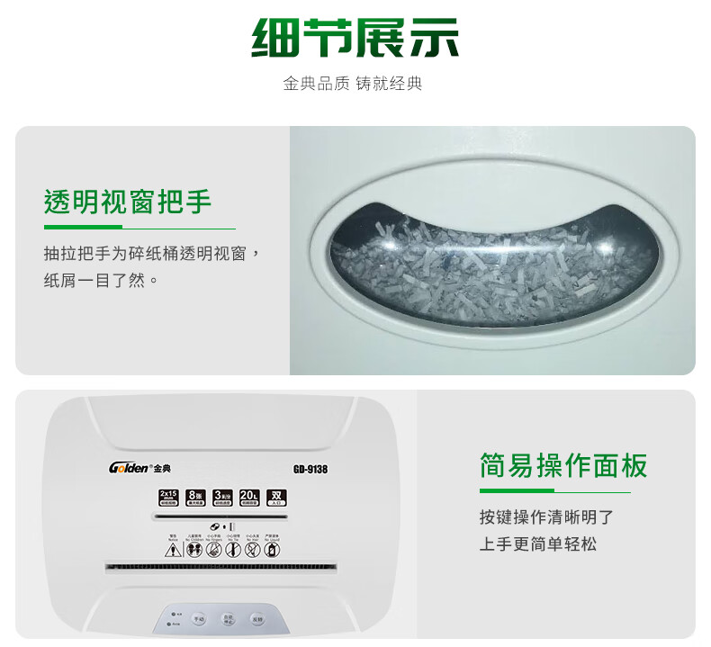 金典(Golden)GD-9138碎纸机电动办公碎纸机 粒状家用大功率 碎纸机
