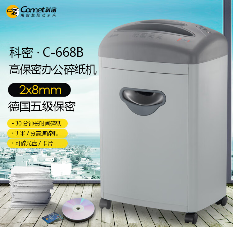 科密(comet)C-668办公商用5级保密碎纸机(单次7张 持续30分钟 17L 可碎卡、光盘)