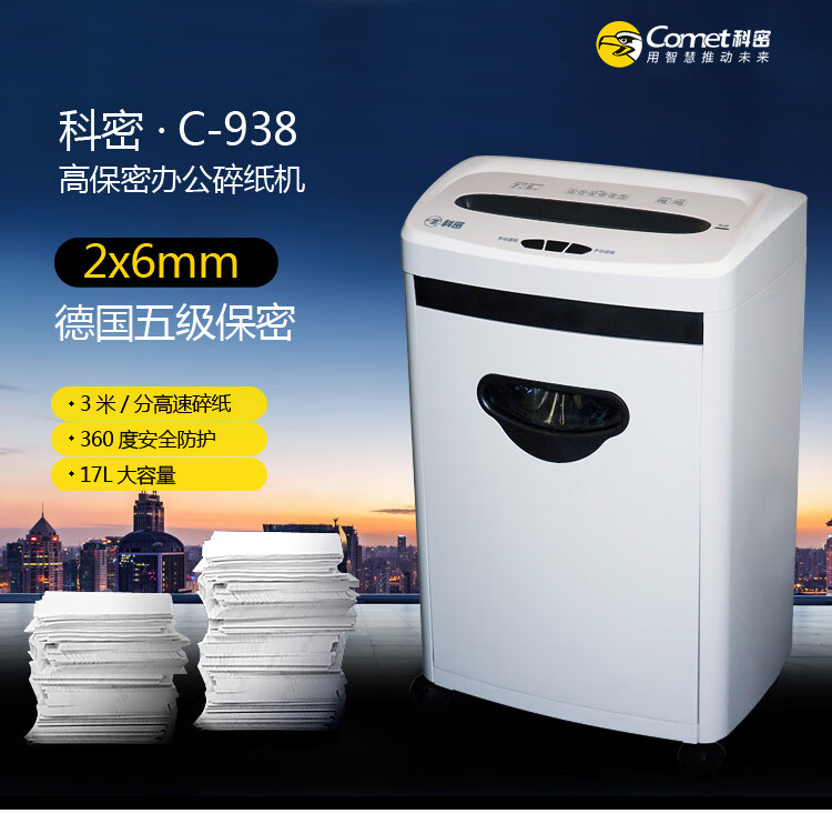 科密(comet)C-938 5级保密办公商用碎纸机(单次6张 持续10分钟 17L )