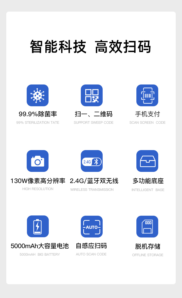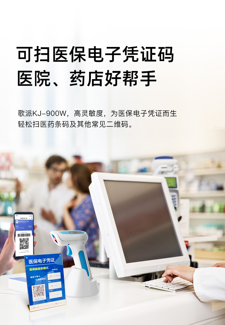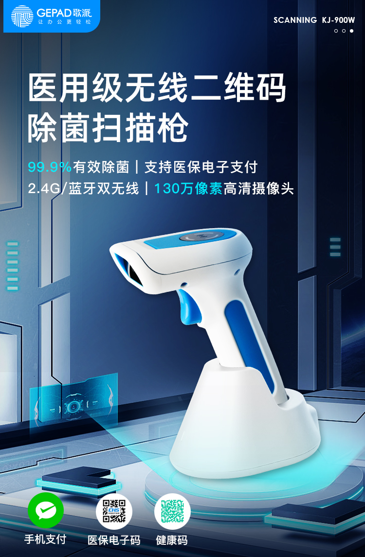 歌派(GEPAD)扫描枪 无线一二维码除菌扫码枪 蓝牙扫码器 商超收银开票医保电子凭证健康码扫描器 KJ-900W