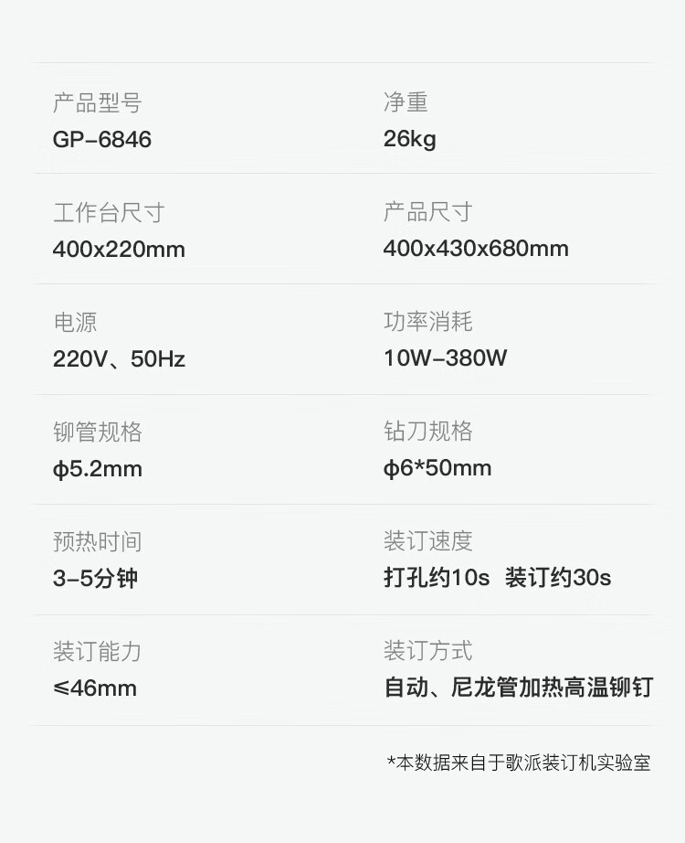 歌派(GEPAD)全自动财务凭证装订机 档案文件打孔机 GP-6846
