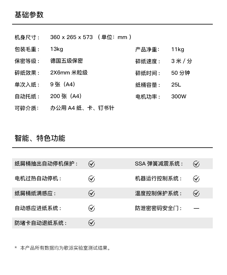 歌派(GEPAD)5级保密办公商用全自动碎纸机(手动9张/自动200张 持续50分钟 25L可碎卡)GS-9200M