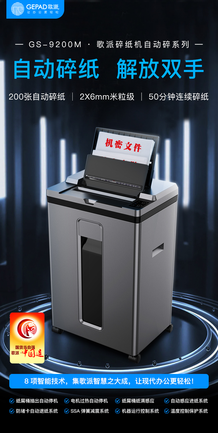 歌派(GEPAD)5级保密办公商用全自动碎纸机GS-9200M